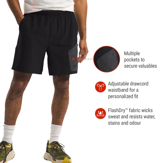 The North Face Men’s Lightstride Shorts are designed for comfort and versatility, featuring moisture-managing FlashDry™ fabrics and a DWR finish to keep you dry. With integrated elastane for flexibility and multiple pockets for storage, these shorts are perfect for activity-rich or relaxed days.