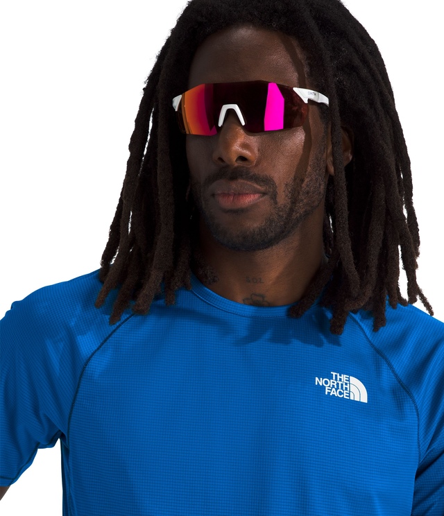 The North Face Men's Sunriser T Shirt integrates FlashDry™ technology for trail running and outdoor activities. The split hem design and rolled shoulder construction work seamlessly with running vests and packs. Reflective elements on the chest and back enhance visibility during low-light adventures, making this Sunriser t shirt ideal for running and outdoors.