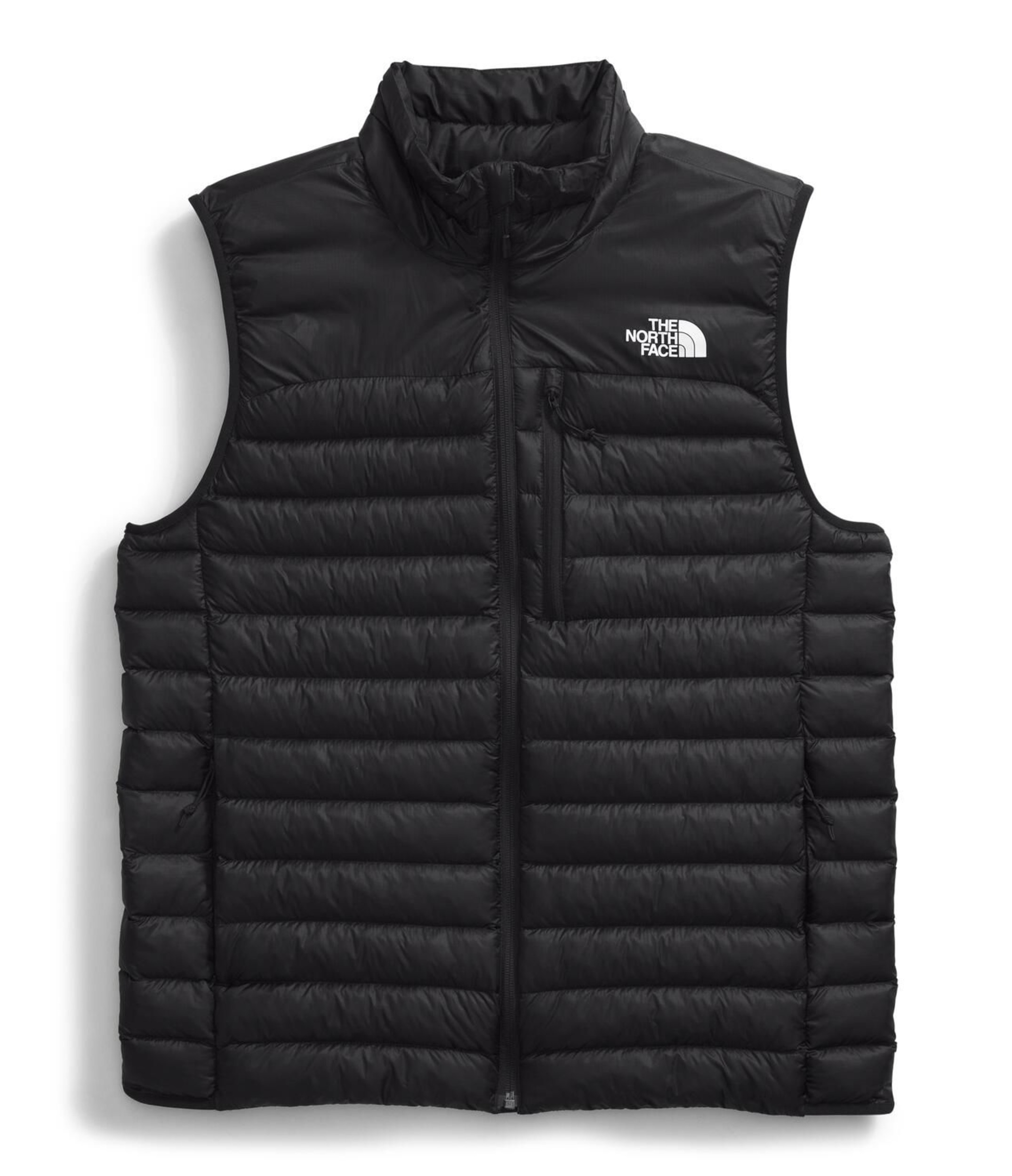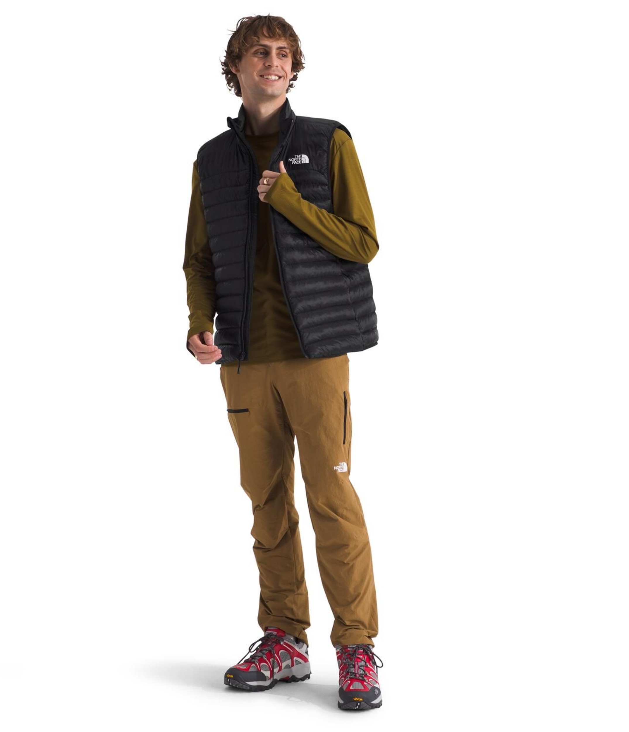 Stay warm and mobile with The North Face Men's Terra Peak ThermoBall Vest. This essential men's vest offers core insulation with 100% recycled ThermoBall™ fill, ensuring warmth even in wet conditions. The Pertex® Quantum fabric enhances thermal performance, making this men's black vest a reliable choice for cold-weather adventures.