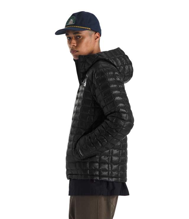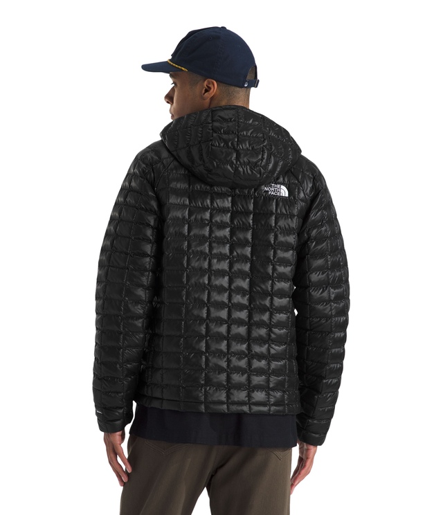 The North Face Men's ThermoBall™ Hooded Jacket is a stylish insulated jacket made with recycled fabrics and insulation. Featuring innovative ThermoBall™ technology, this slim-fitting jacket offers lightweight warmth ideal for city streets or outdoor adventures. The recycled nylon shell and polyester lining reduce environmental impact, while the non-PFC DWR finish adds water-repellent protection. Designed for versatility, this hooded jacket stows compactly into its chest pocket and includes heat transfer logos, a reverse-coil zipper, and concealed hand pockets.