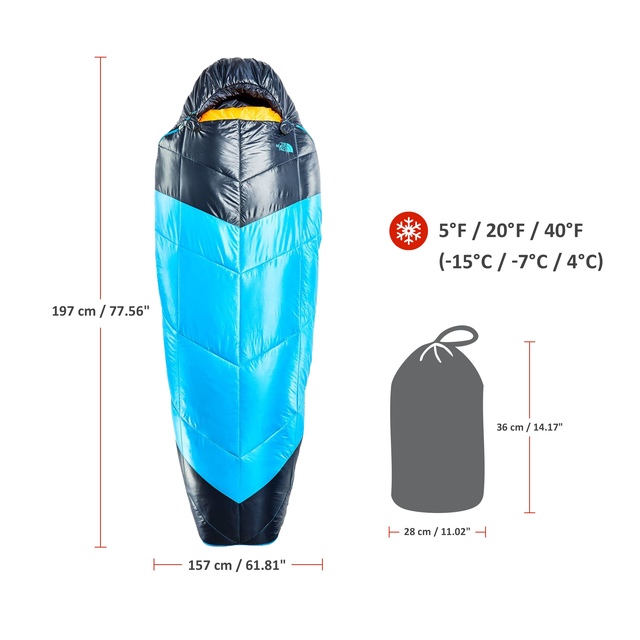 The North Face One Bag Sleeping Bag System features a modular design for temperatures of 5°F/20°F/40°F (-15°C/-7°C/4°C). This innovative sleeping solution includes a top layer with +11°C-rated Heatseeker™ Pro synthetic insulation, a mid-layer with -7°C-rated 800-fill ProDown™ and a quilt option for lounging. Complete with a compression sack doubling as a camp pillow, a spacious hood and a vaulted footbox, the One Bag from The North Face tucks into its own storage sack.