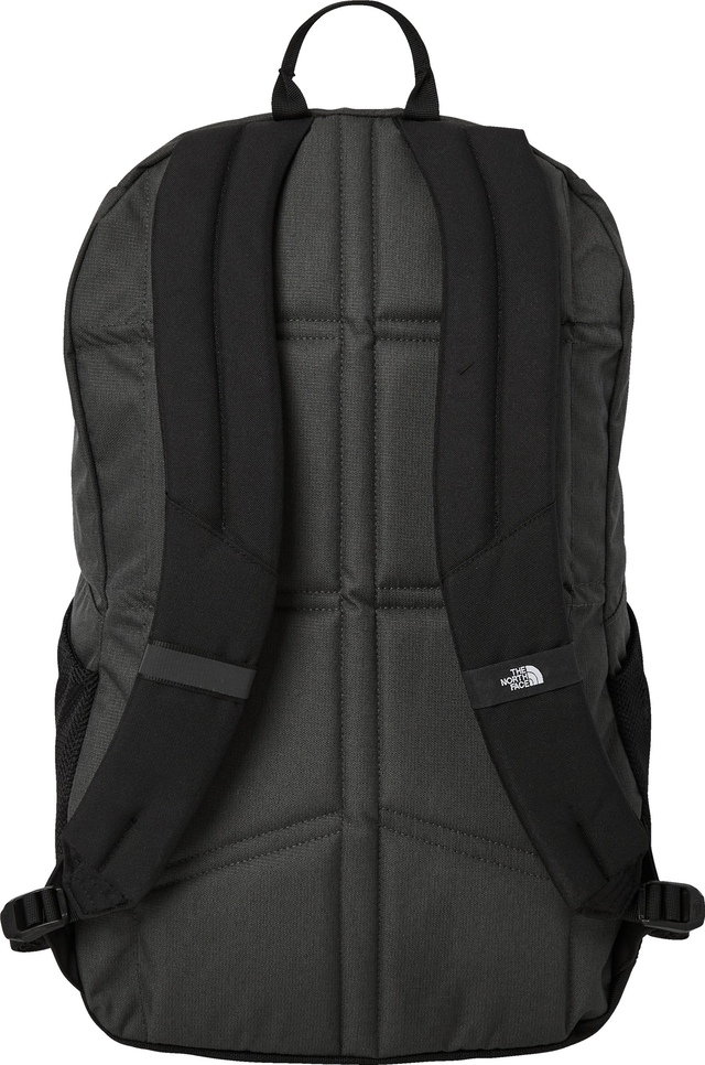 The iconic North Face bungee cord system with clips offers adjustable organization options to secure items internally and externally