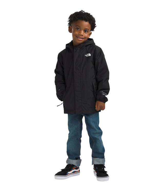 The North Face Toddler Boys' Warm Antora Rain Jacket is the perfect solution for rainy days. Crafted from fully recycled, waterproof, windproof DRYVENT™ fabric, it offers reliable protection from the elements. Whether at the playground or on the trail, this jacket ensures they stay dry, comfortable, and stylish with its fun all-over print.