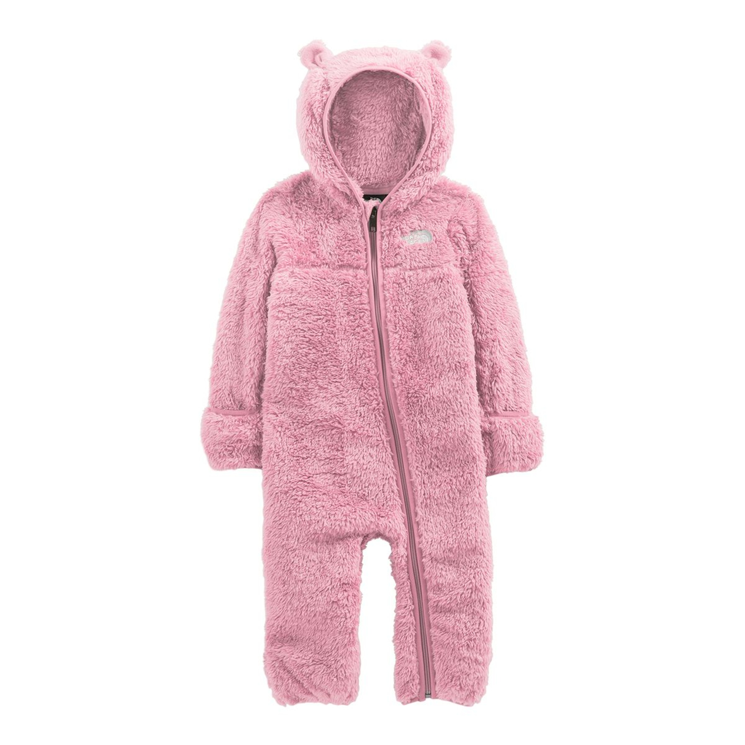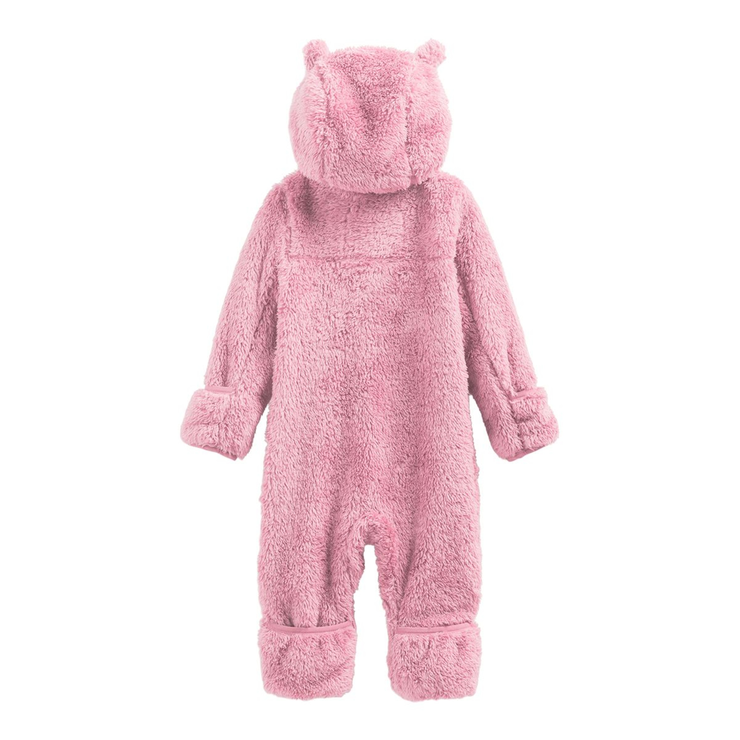 With fold-over cuffs and an asymmetrical front that angles the zipper away from the face, this soft, high-pile Sherpa fleece one-piece is perfect for introducing your tiny explorer to winter.