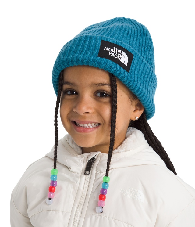 The North Face Unisex Salty Dog Lined Beanie is designed to keep kids warm and comfortable with its recycled polyester knit and moisture-wicking FLASHDRY™ lining. The cuffed beanie, cable-knit design, and woven logo add a touch of classic style, making it perfect for any outdoor adventure.
