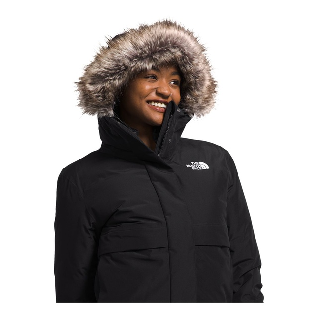 As a new addition to The North Face Arctic Parka line, the The North Face Women's Arctic Bomber Jacket incorporates all of the same warm, waterproof, breathable features, but in a slightly shorter silhouette. With 100% recycled DryVent™ body fabric, 600-fill recycled down insulation and ribbed cuffs and hem, this jacket has the city-ready aesthetics to tackle whatever winter throws your way.