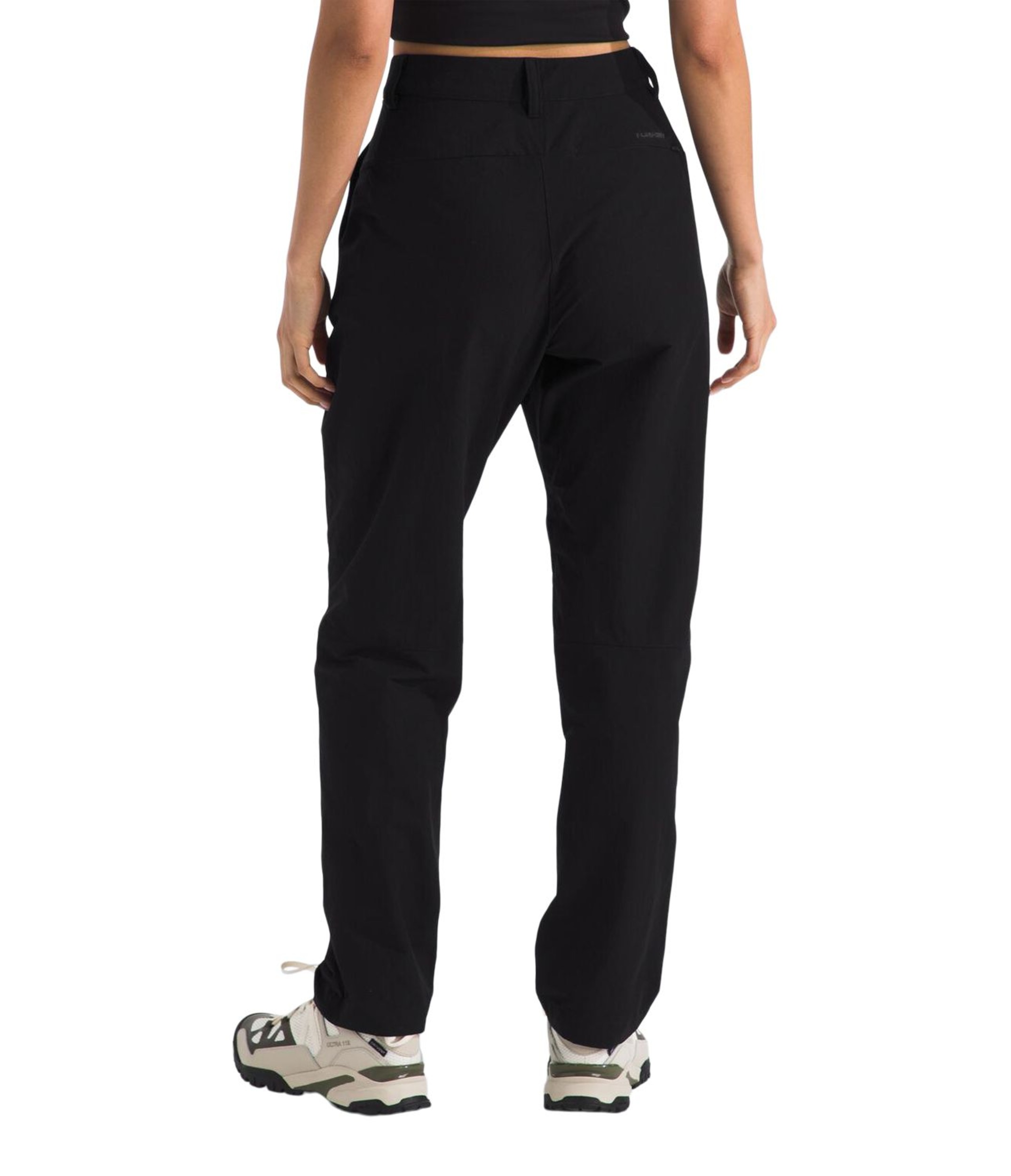 The North Face Women's Basin Pants blend comfort and functionality. Featuring FLASHDRY™ technology, these pants effectively manage moisture to keep you dry. The four-way stretch recycled nylon fabric ensures freedom of movement, while the non-PFC DWR finish offers protection against light rain.