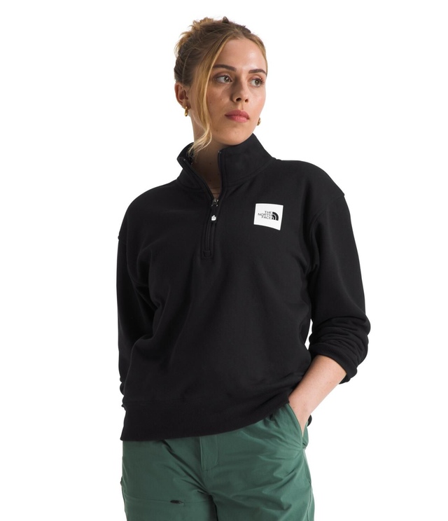 The North Face Women's Box Half Dome Quarter Zip Long Sleeve Top is a warm and exceptionally soft recycled fleece top, perfect as a layer on chilly days.