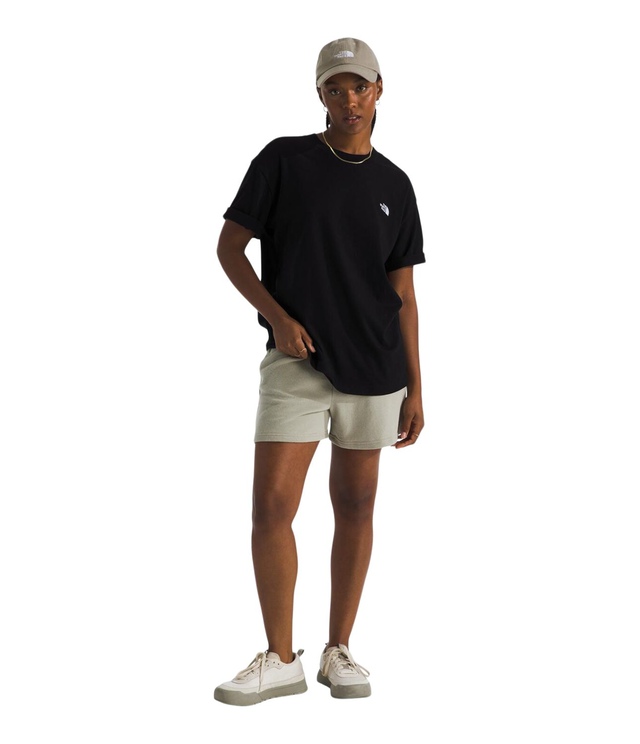 An oversized length, soft materials and dropped shoulder design will make The North Face Women's Evolution Oversized T Shirt an any-season go-to. This tee is made using at least 50% Climate Conscious Cotton grown in the U.S. by farmers practicing regenerative agriculture.