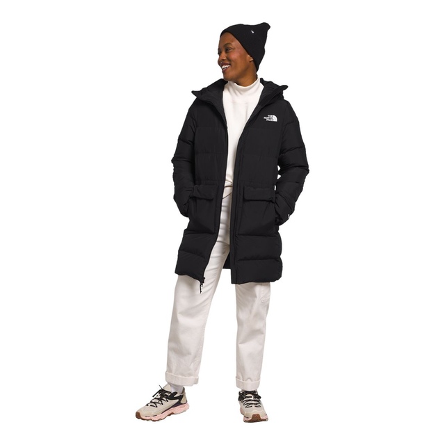 The North Face Women's Gotham Parka Jacket provides warmth for cold weather. Insulated with down and Heatseeker™ Eco technology, it offers a flattering fit and excellent warmth-to-weight ratio. This Gotham parka includes a water-repellent finish for added protection.