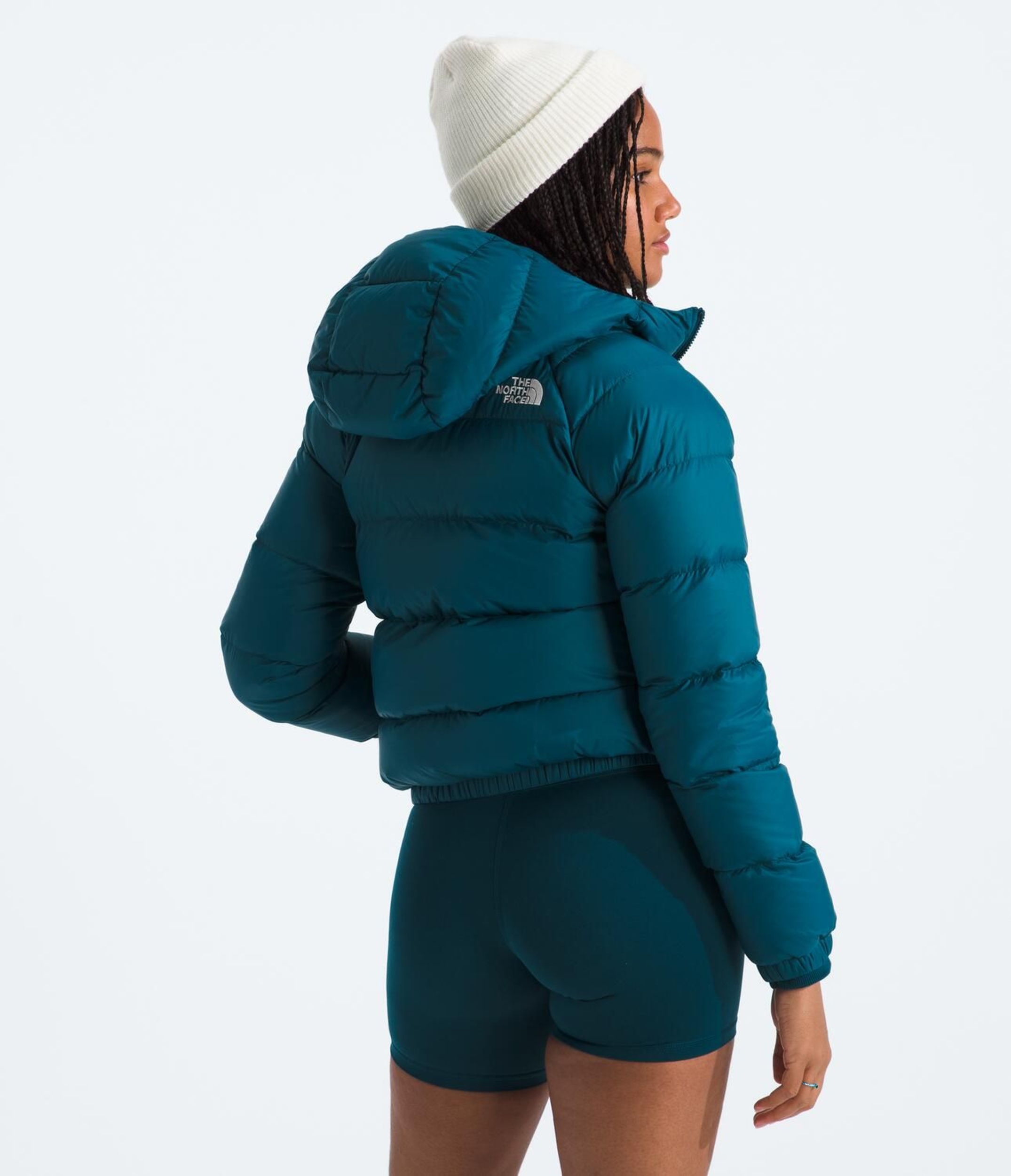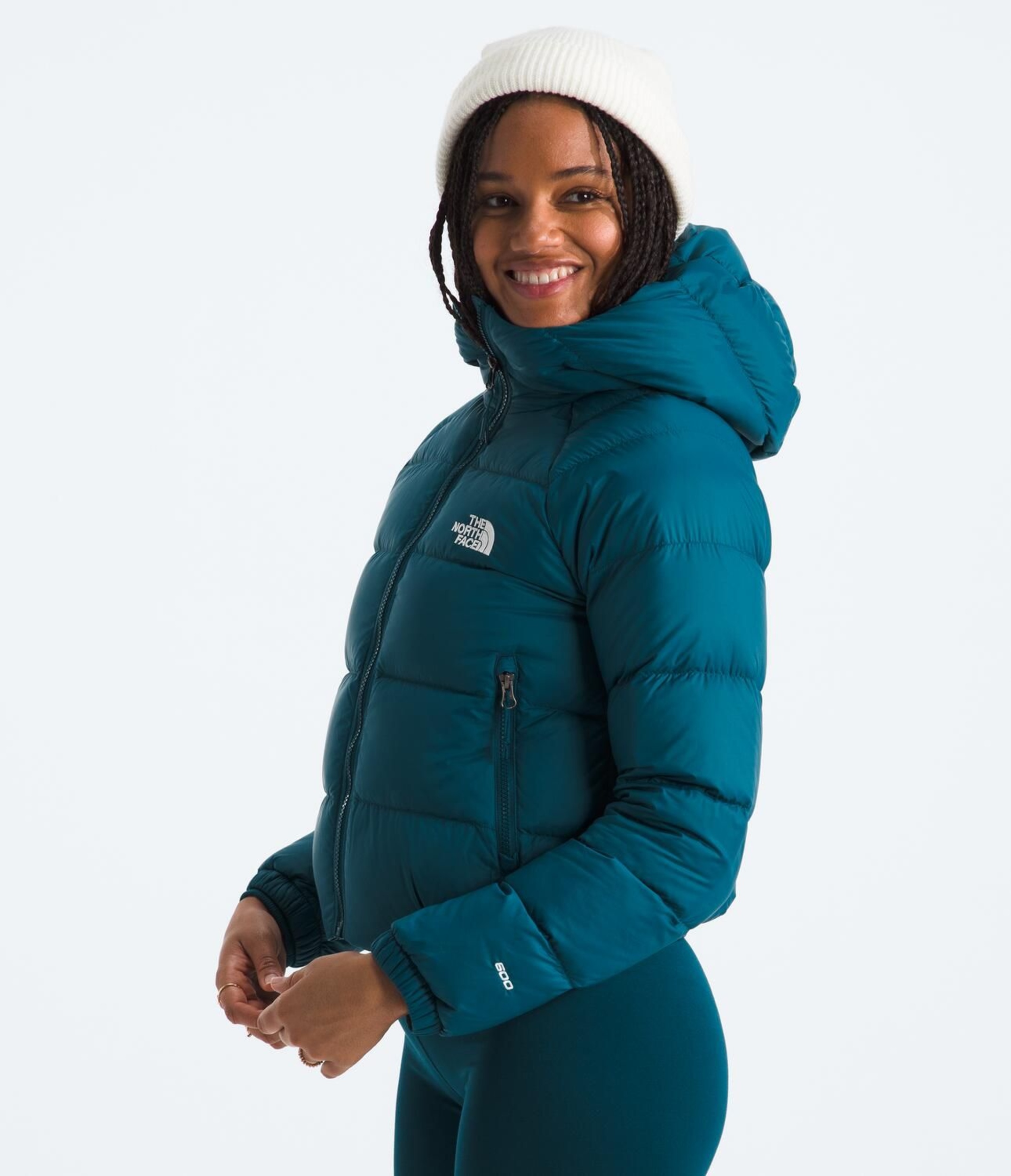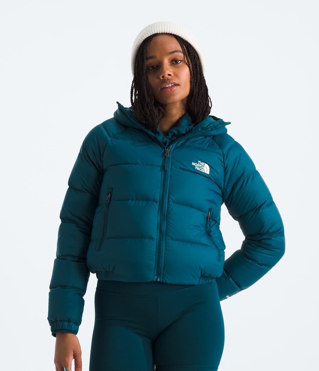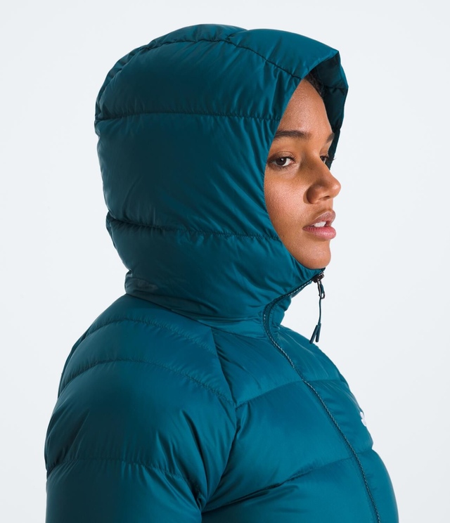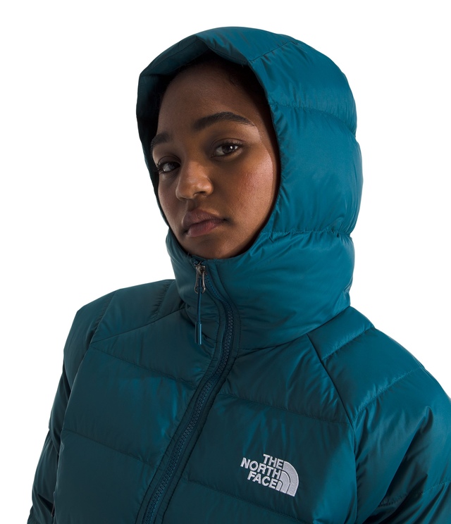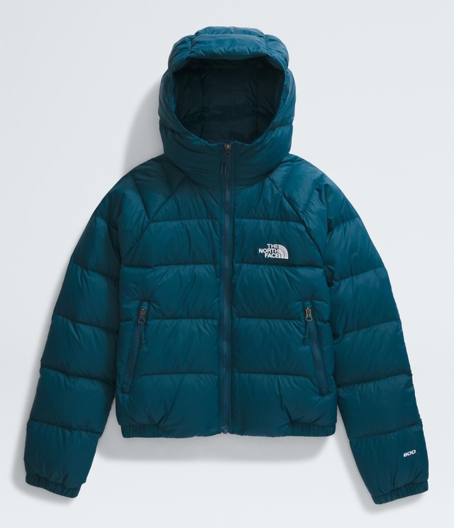 The North Face Women's Hyrdenalite Down Hoodie offers sustainable winter warmth with its toasty 600-fill recycled waterfowl down insulation and 100% recycled body and lining.