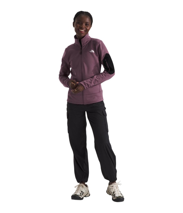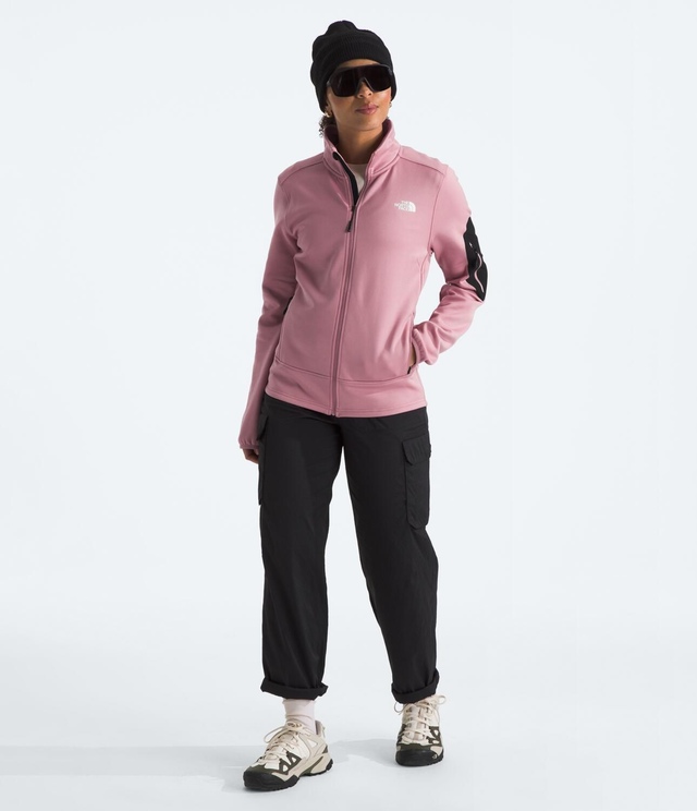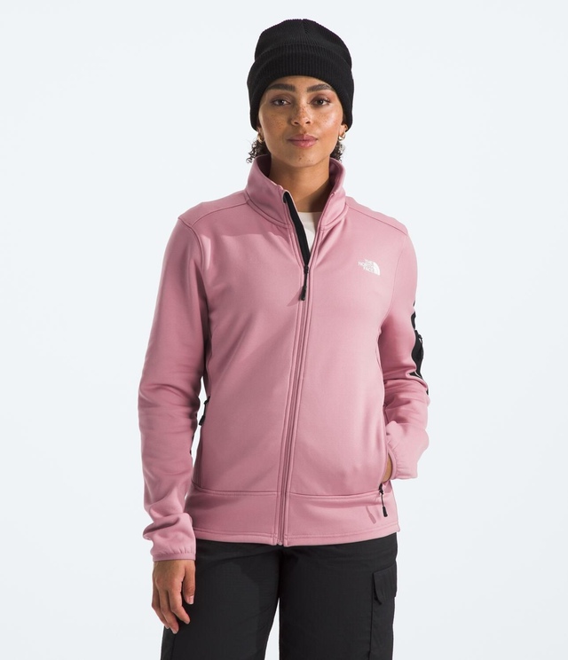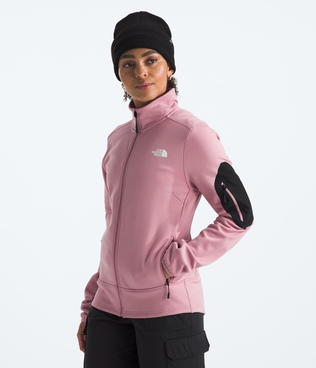 The North Face Women's Mistyescape Full Zip Fleece Top provides reliable warmth and protection for your outdoor adventures. Crafted with a stretchy fleece fabric, this slim-fitting jacket allows for unrestricted movement on the trails. Its water-repellent finish shields you from light rain and moisture, ensuring you stay comfortable in cold, damp conditions. An essential layering piece for hiking, camping and other outdoor pursuits.