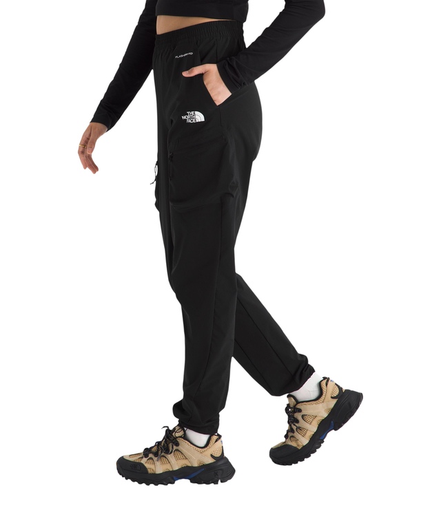 The North Face Women's Jogger Pants offer a stylish look combined with functionality. These cargo joggers are designed with a water-repellent finish and cargo pockets for convenient storage. They can be easily packed into a zip side pocket, making them perfect for travel and outdoor adventures.
