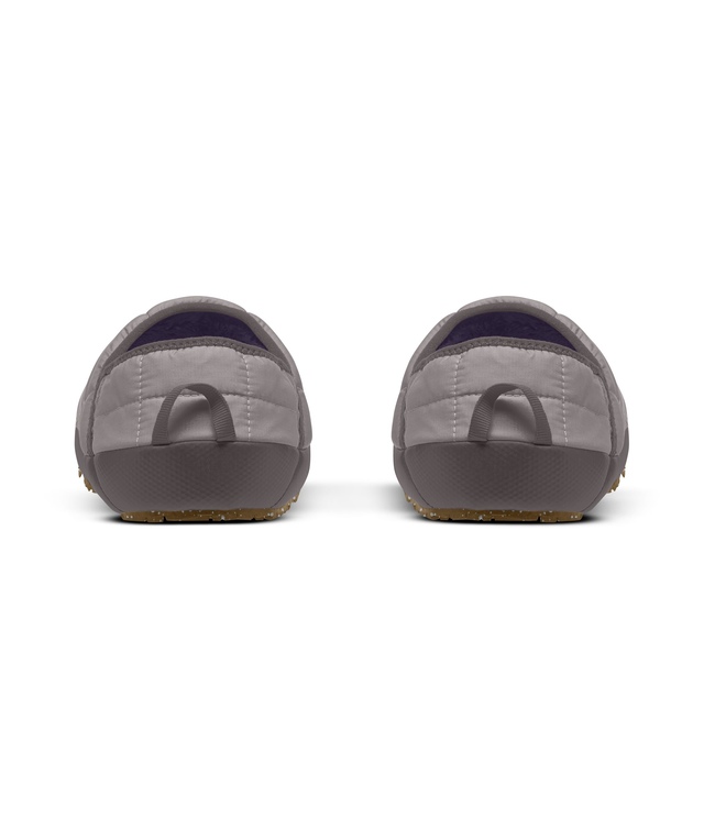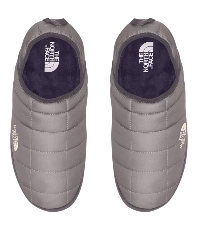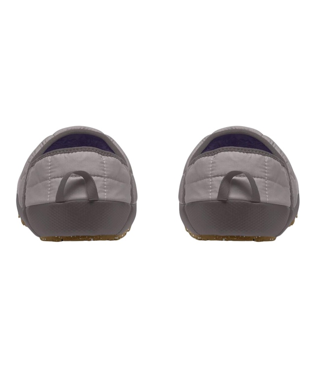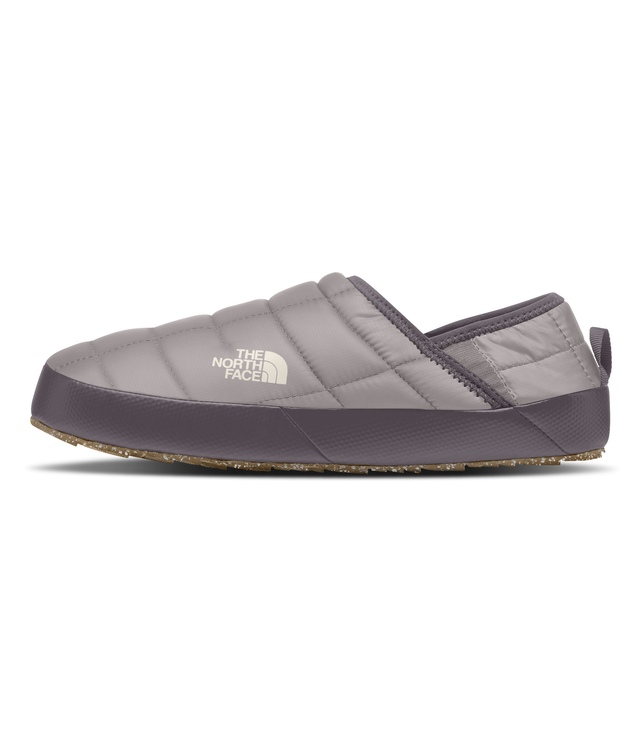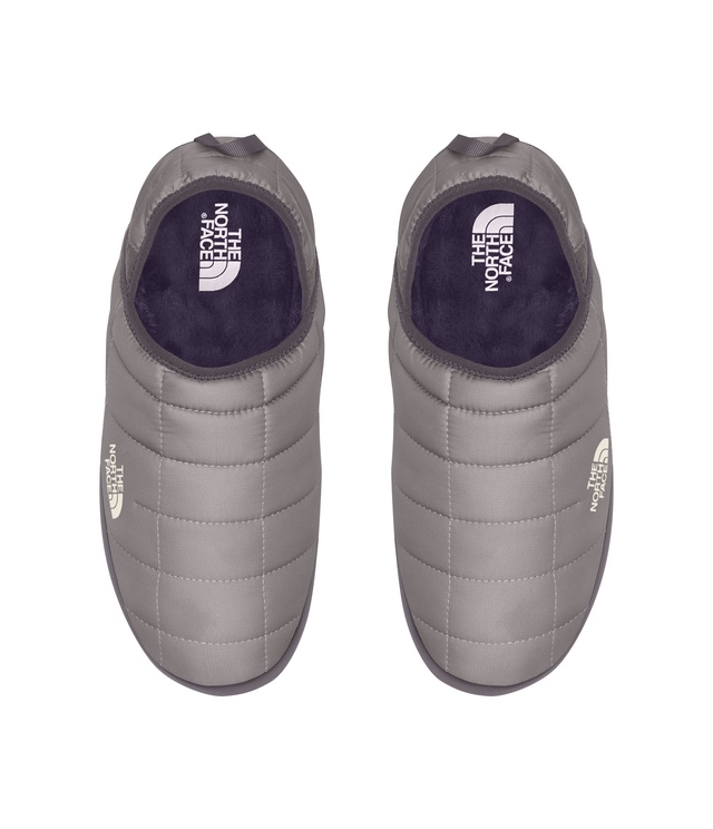 The North Face Women's ThermoBall Traction Mule Slip On Shoes integrate 100% recycled ThermoBall™ polyester insulation with 100% recycled PET ripstop uppers. The non-PFC water-repellent finish enhances protection, while the rubber outsole contains 20% recycled content. These mules deliver versatile indoor/outdoor wear with a collapsible heel and elastic panels.