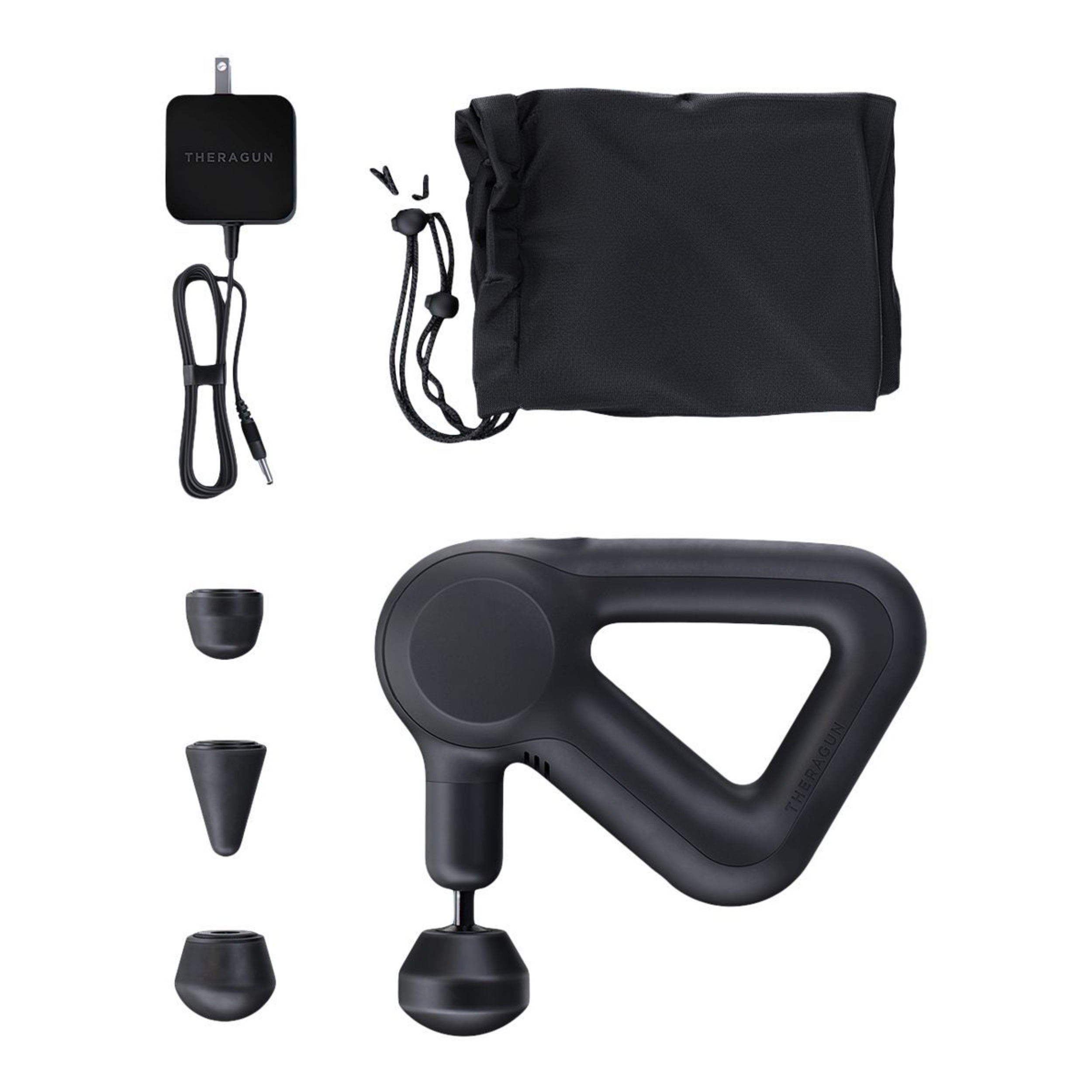 Theragun Prime™: Essential Features. Hardly Any Sound. Perfect balance of strength and style. Deep muscle treatment with Smart Percussive Therapy. Ergonomic design for everyone. Powerful and remarkably quiet. Bluetooth-enabled for customized wellness routines. 16mm amplitude for deep tension release. Includes: Travel pouch, 4 easy-to-clean foam attachments (Dampener, Standard Ball, Cone, Thumb), Power adapter.