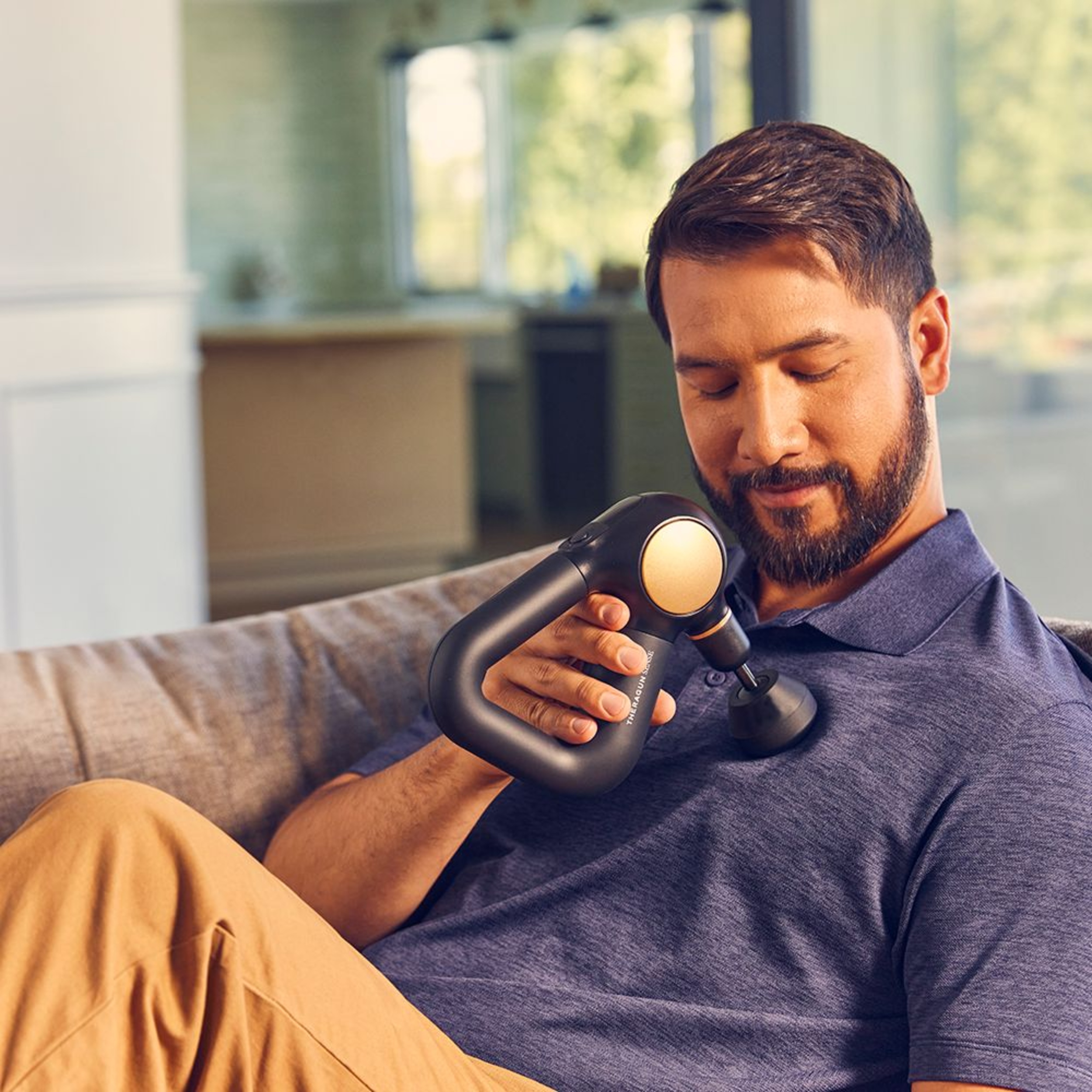 Scientifically proven percussive massage therapy helps relieve muscle aches, pains and soreness by increasing blood flow and promoting recovery