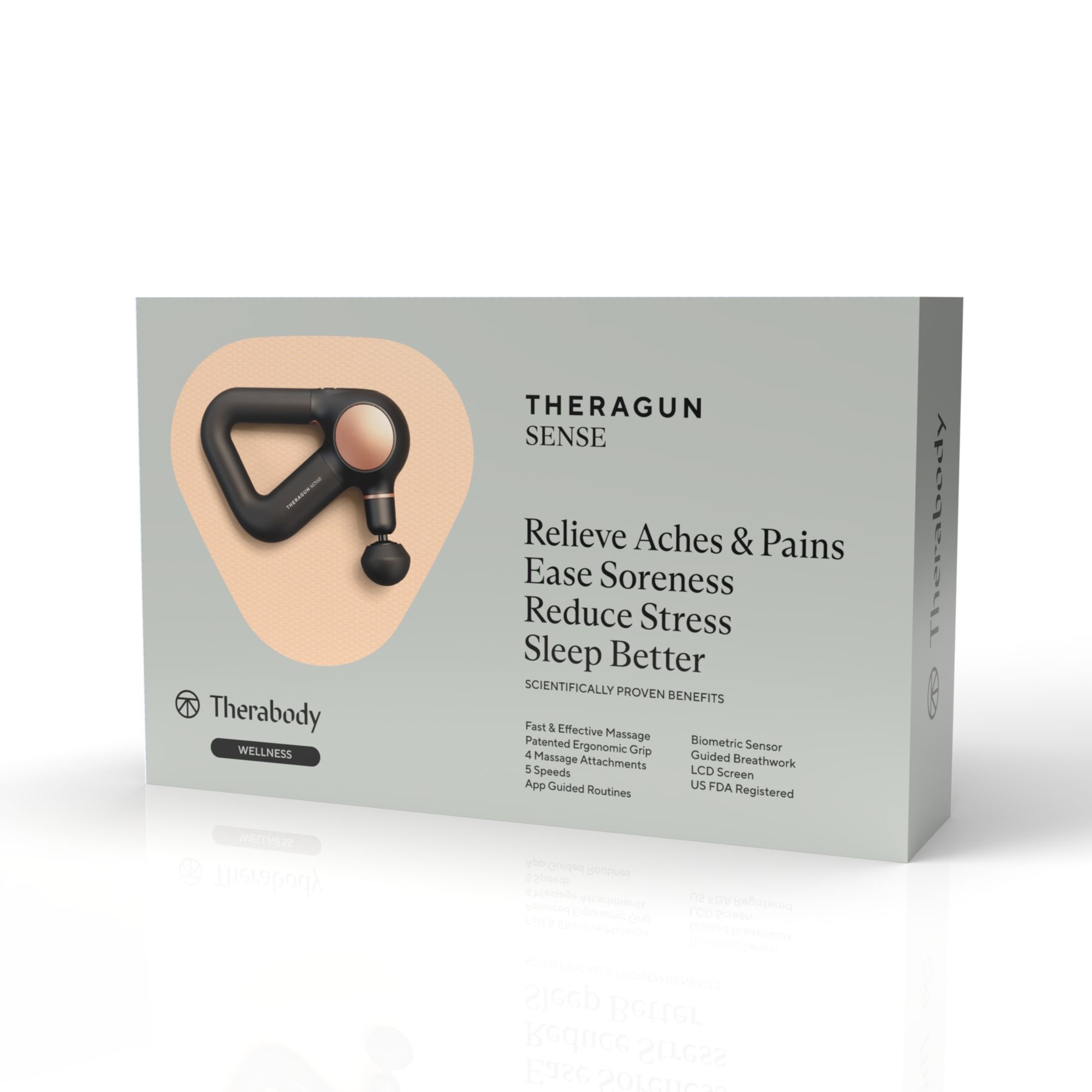 Relax both mind and body with the Therabody Theragun Sense Massage Gun, a device which combine scientifically proven percussive massage therapy with calming breathwork to reduce stress, relieve aches and pains, ease soreness, and support restful sleep. Designed with strict quality and safety standards, Theragun Sense is an FDA registered medical device. Equipped with simple, visually-guided routines and a built-in biometric sensor for personalized insights from on-device heart rate readings, Theragun Sense makes it easy to create an effective, personalized wellness routine. Whether you need a quick mind-body refresh or a reliable way to relax at the end of the day — Theragun Sense gives you peace of mind, in the palm of your hand.
