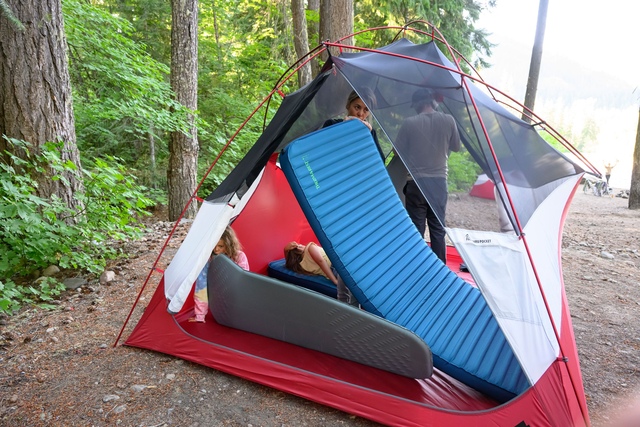 Self-inflating foam core provides cushioned comfort and automatic inflation