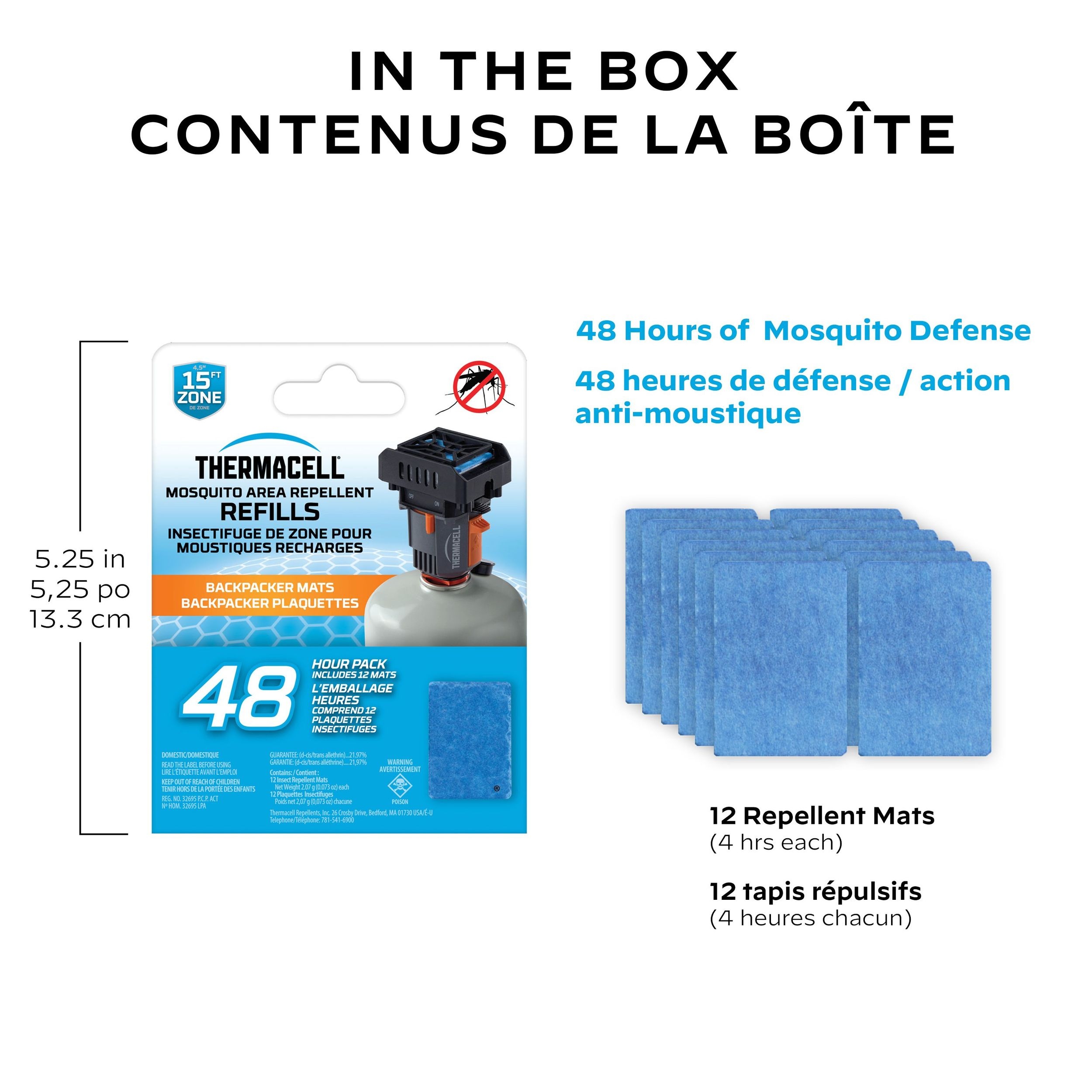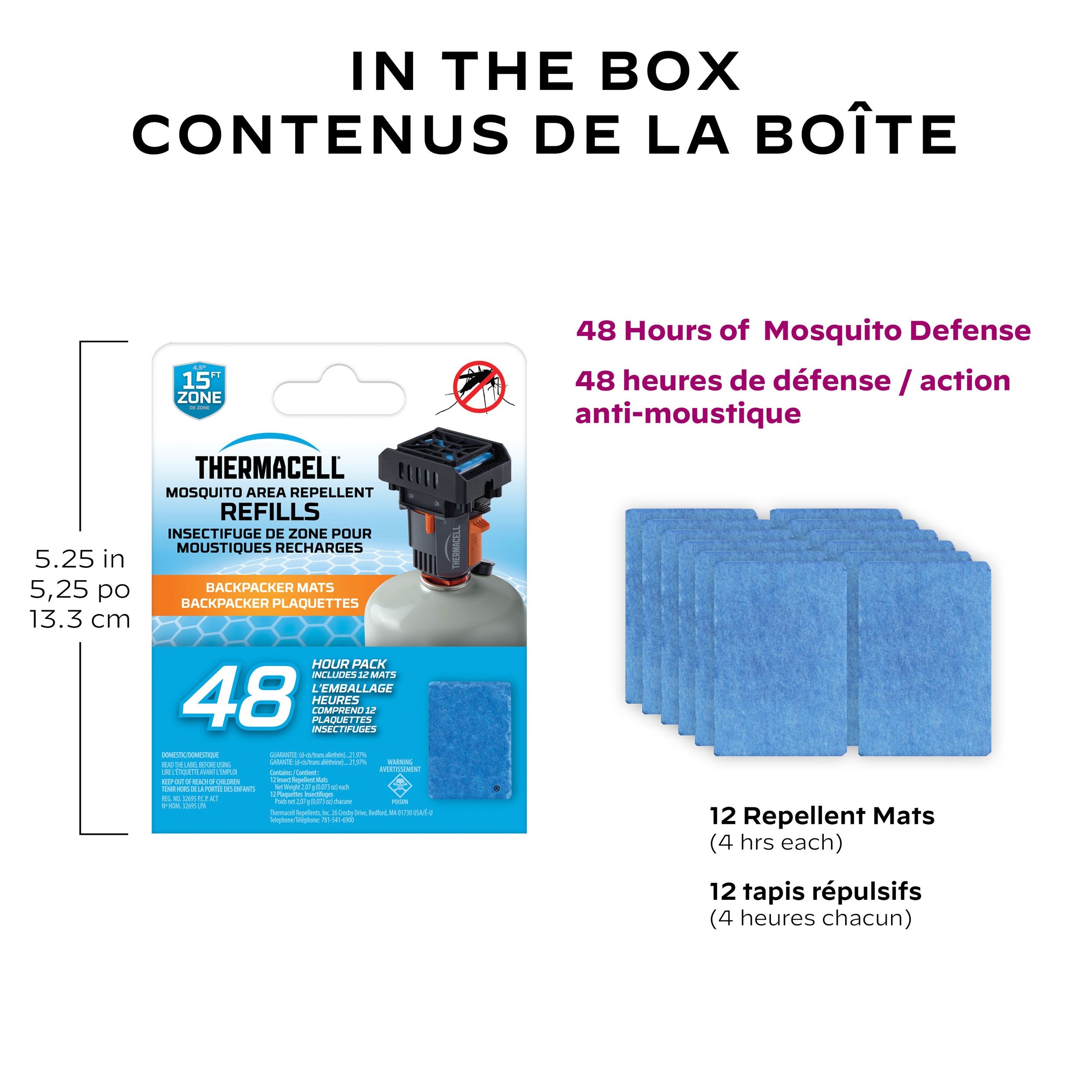 The Thermacell Backpacker Mosquito Repeller Refill Mat provides effective mosquito protection for up to 48 hours. Designed for outdoor enthusiasts, this refill creates a 15-foot zone free from mosquitoes, ensuring a comfortable experience while camping or hiking. The easy-to-use refill mat is compatible with Thermacell devices, making it an essential accessory for continued use.