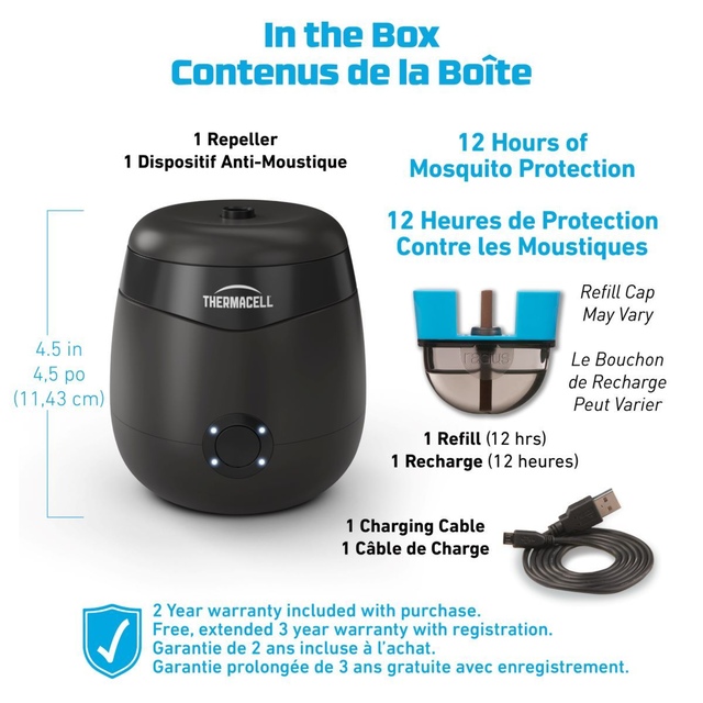 Enjoy the outdoors undisturbed with the Thermacell Rechargeable Mosquito Repeller. This scent-free, DEET-free device offers 12 hours of refillable, chemical-free protection. With a USB rechargeable battery and easy refill system, this handy Thermacell mosquito repeller ensures continuous defence against mosquitoes without open flames or the need for on-skin applications.