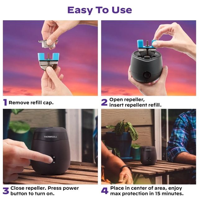 One-button operation activates the Repeller for relaxing mosquito-free outdoor time