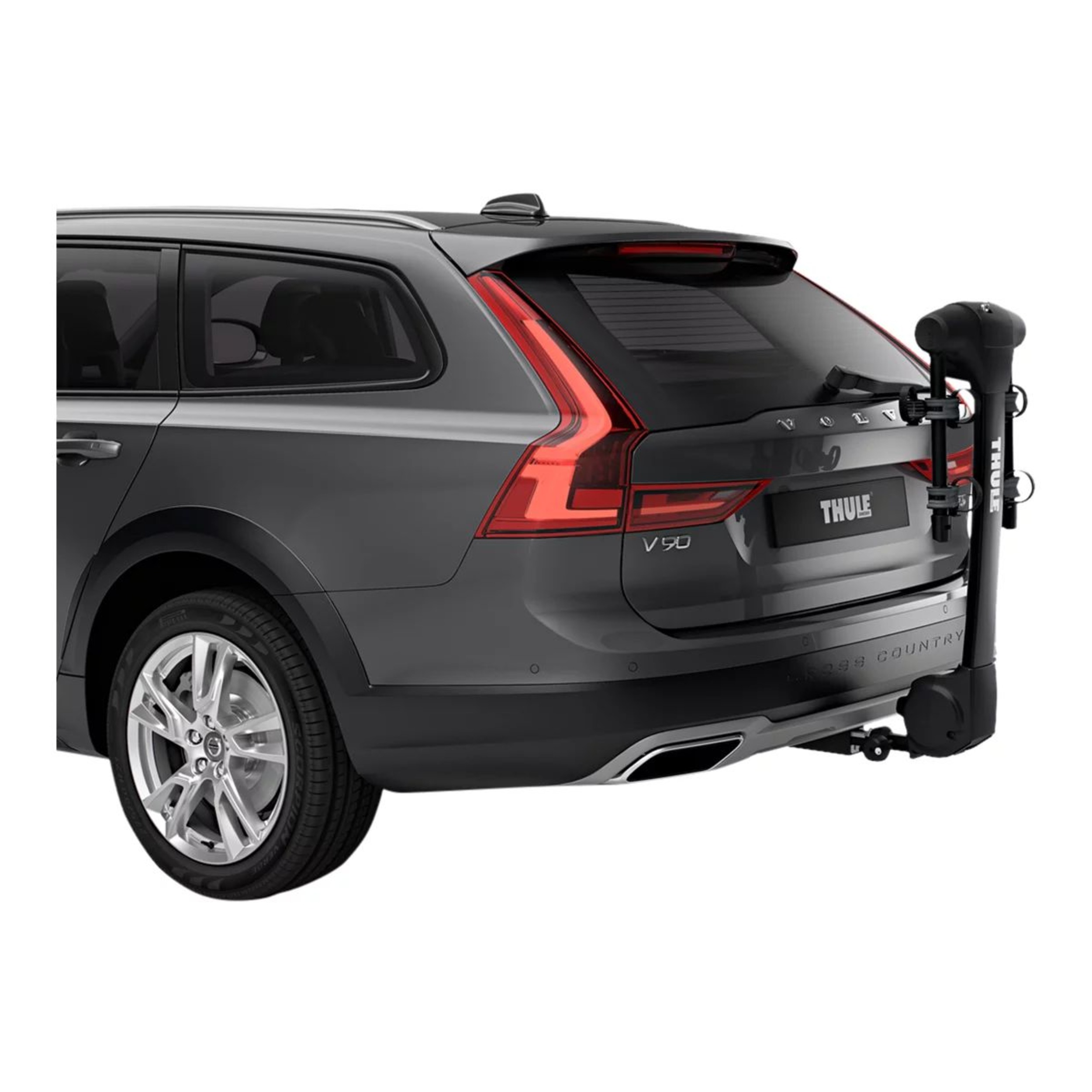 Convenient access to the rear of the vehicle using the HitchSwitch lever to tilt the rack down