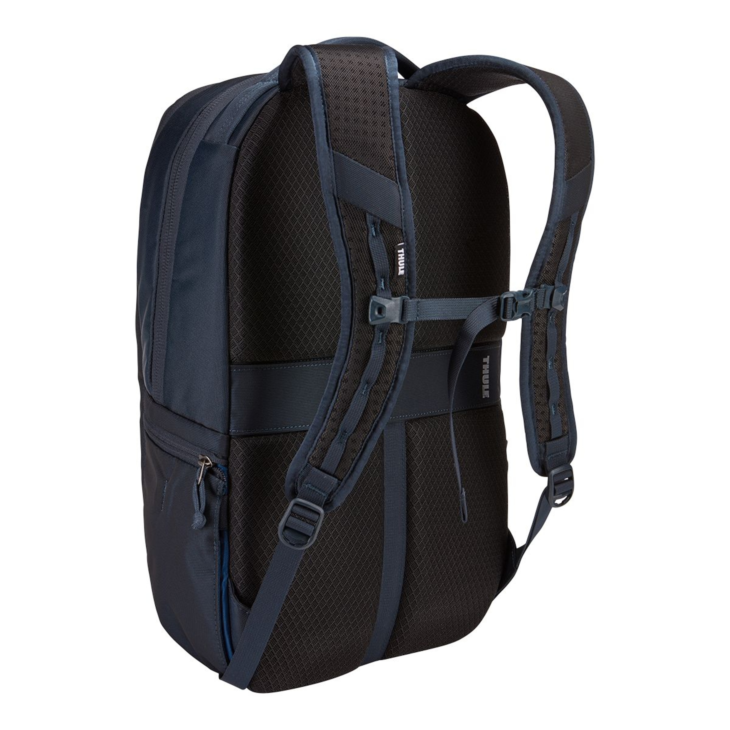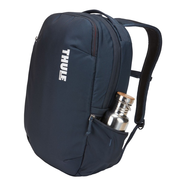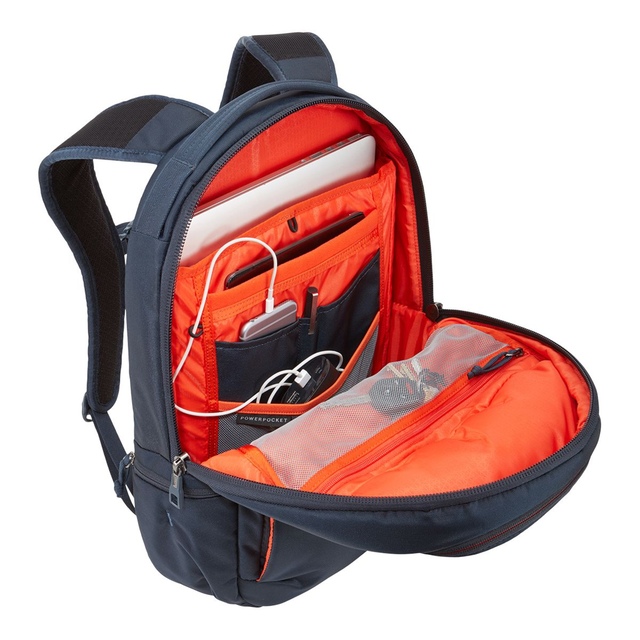 The Thule Subterra 23L Backpack is an organized laptop backpack for protecting your electronics and valuables. It has dedicated storage for a tablet and laptop up to 16 inches with soft lining and SafeEdge construction. An internal PowerPocket manages cords, while padded pockets safeguard smaller items. Adjustable straps with a sternum strap provide comfort, and an expandable side pocket offers access to essentials. You can attach the pass-through panel of this laptop backpack to rolling luggage.
