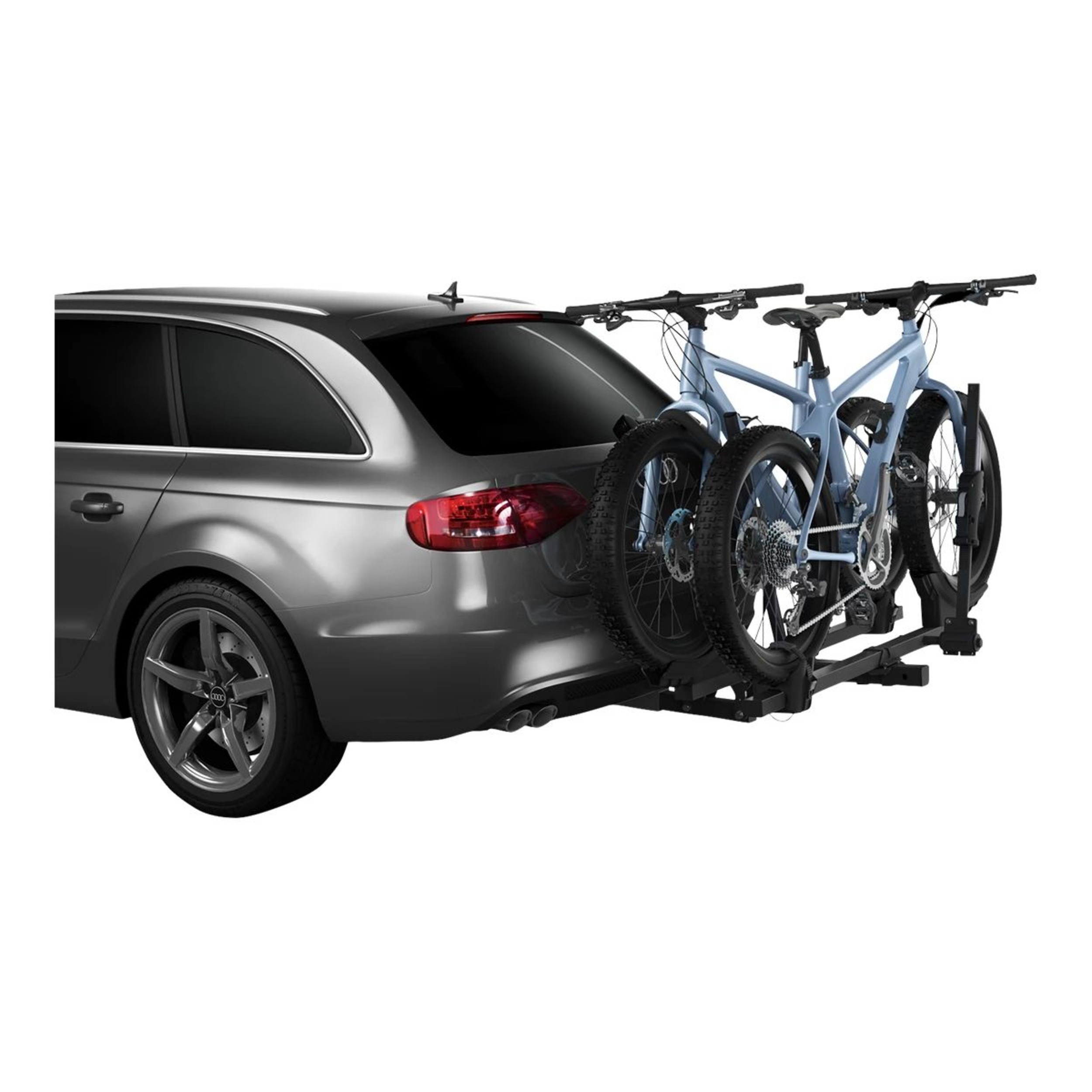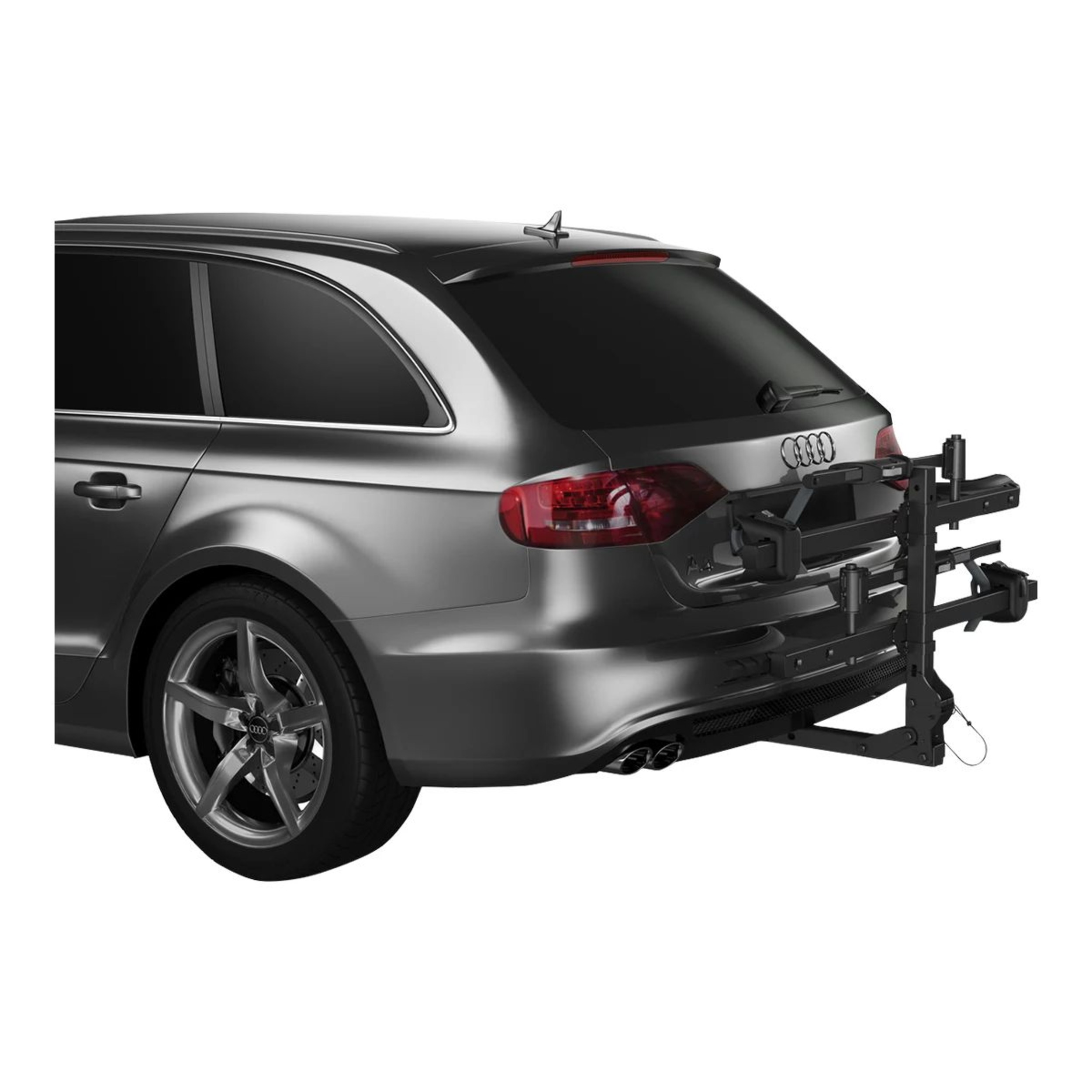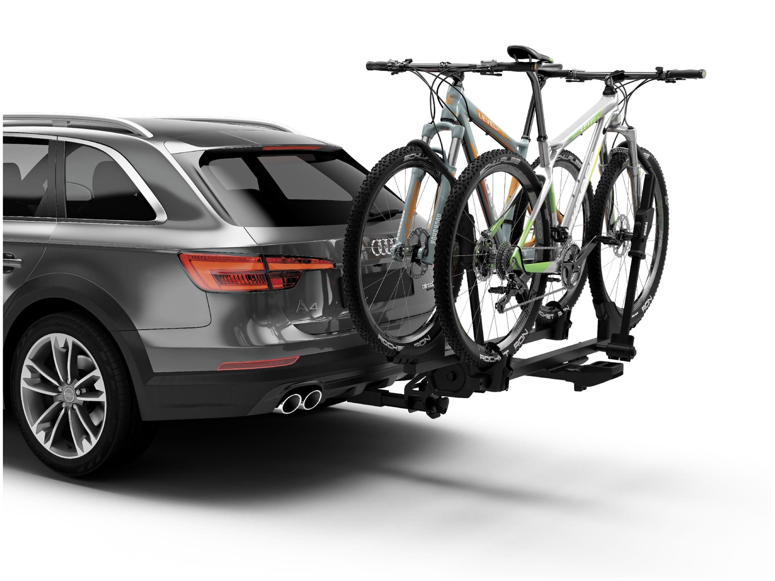 This Thule Classic Hitch Bike Rack secures two bikes to your vehicle with a SnugTite Lock. It can be adjusted side to side to keep bikes from contacting each other. A HitchSwitch lever tilts the rack outward, so you can still access your car's rear compartment.