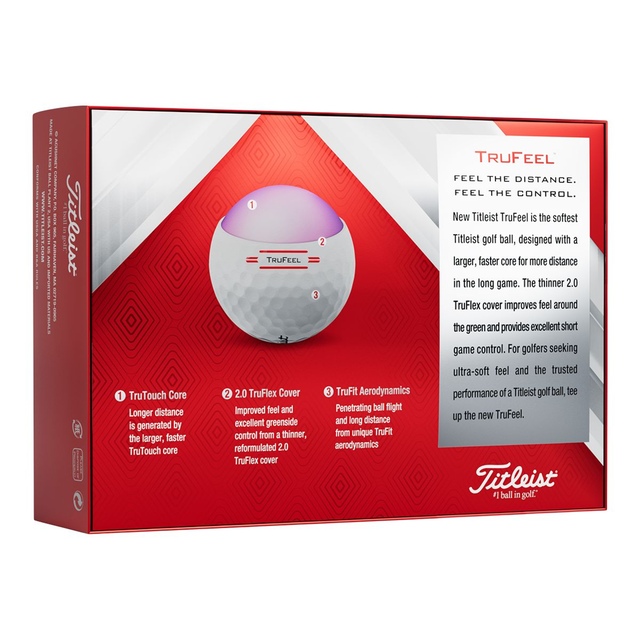FEEL THE DISTANCE. FEEL THE CONTROL. All the feel, all the distance, all Titleist. New Titleist® TruFeel™ is the softest Titleist golf ball re-designed for more distance than ever before and with a thinner cover for improved feel around the green. Plus, the quality you expect from the #1 ball in golf.