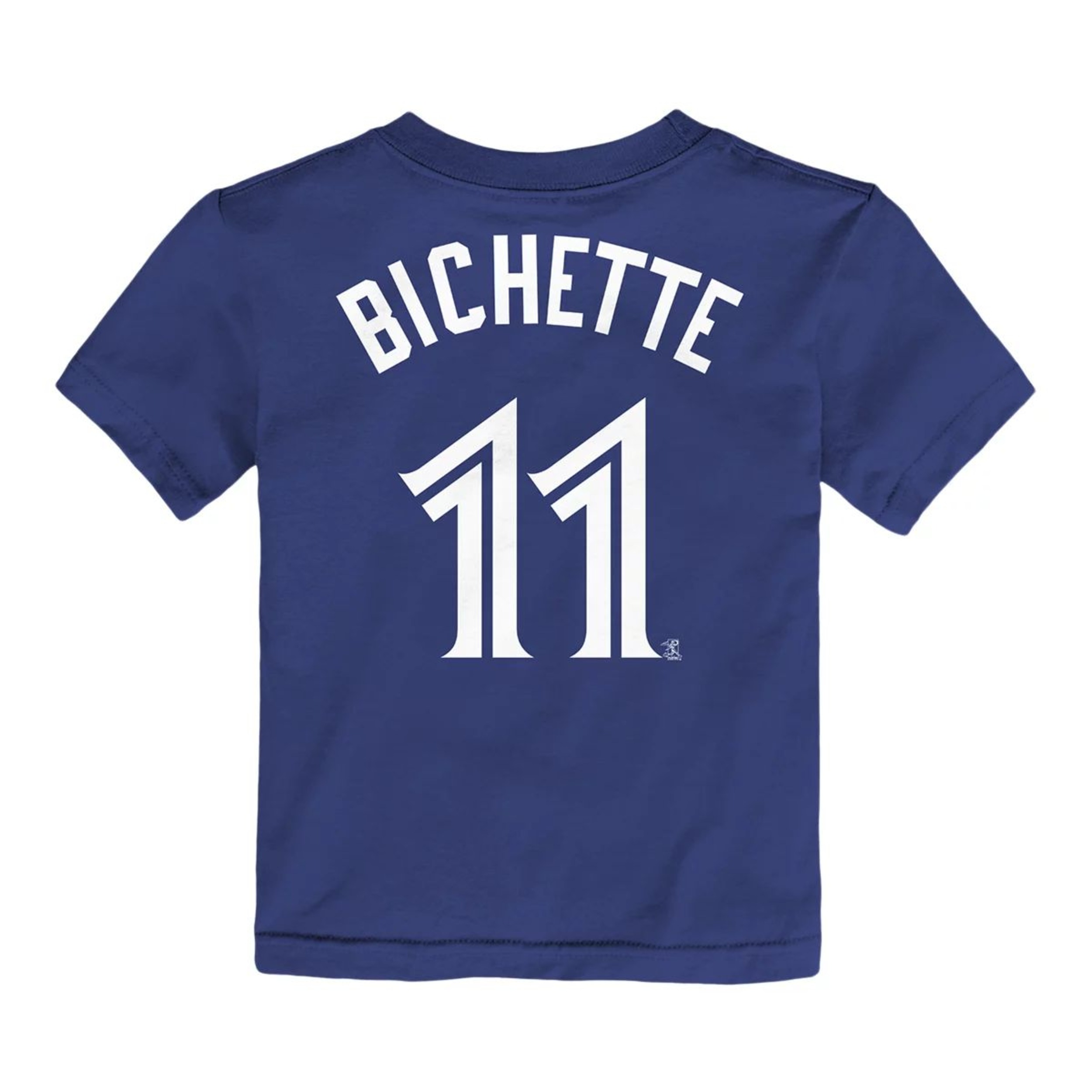 The Nike Toddler Toronto Blue Jays Bo Bichette Cotton T Shirt celebrates the rising star with official team graphics. Made with lightweight, breathable cotton, this toddler tee keeps little ones cool and comfortable while showing their Blue Jays pride. With bold screen print features, this baby Bo Bichette T shirt features Bichette's name and number on the back with the iconic team logo on the chest.