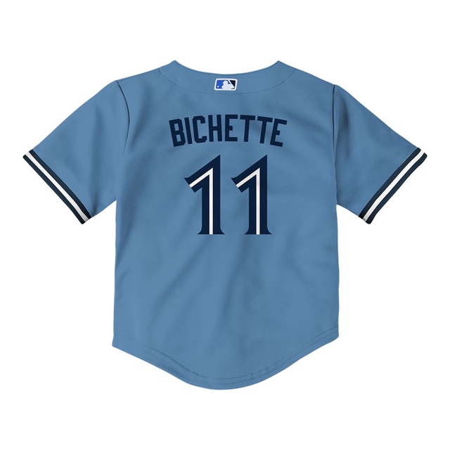 Keep your little one cool and comfortable in the Toronto Blue Jays with this Nike Toddler Bo Bichette Toronto Blue Jays Replica Alternate 3 Baseball Jersey. The polyester fabric and Dri-FIT technology wicks away moisture to keep them dry. With star player Bo Bichette's name and number, this replica jersey delivers the official MLB look to embody the Blue Jays team spirit.