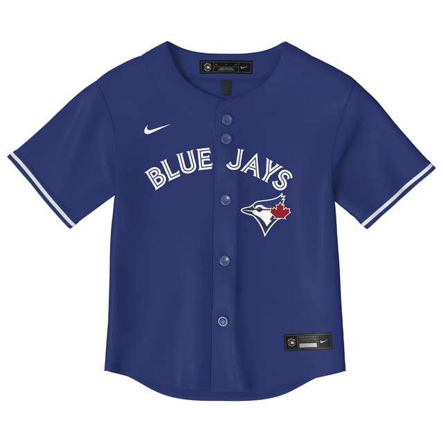 Dress your young one in true Blue Jays spirit with the Toddler Toronto Blue Jays Nike Jersey. This Rush Blue jersey features authentic team graphics and colours, making it perfect for game day. Officially licensed by MLB, it's a must-have for any young fan.