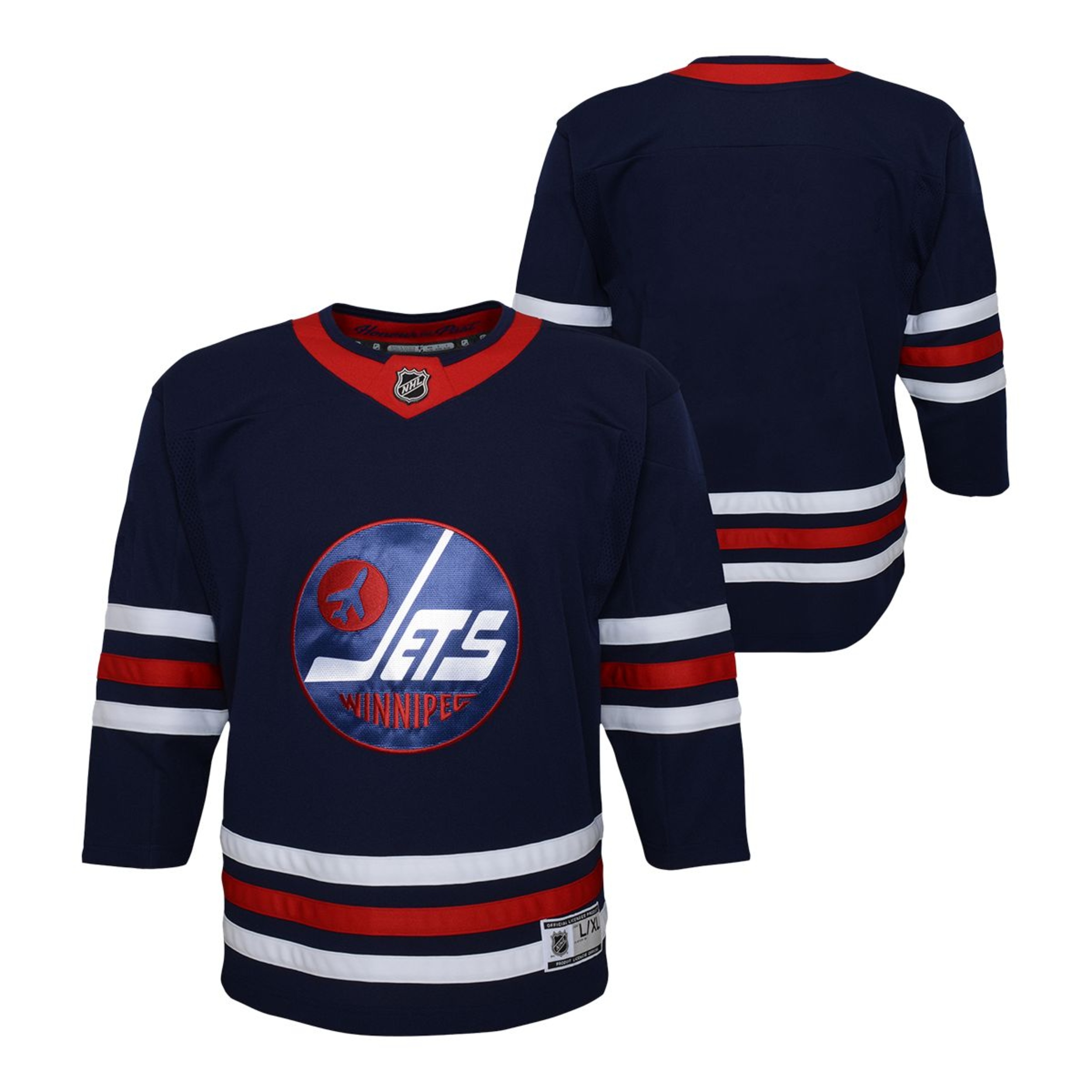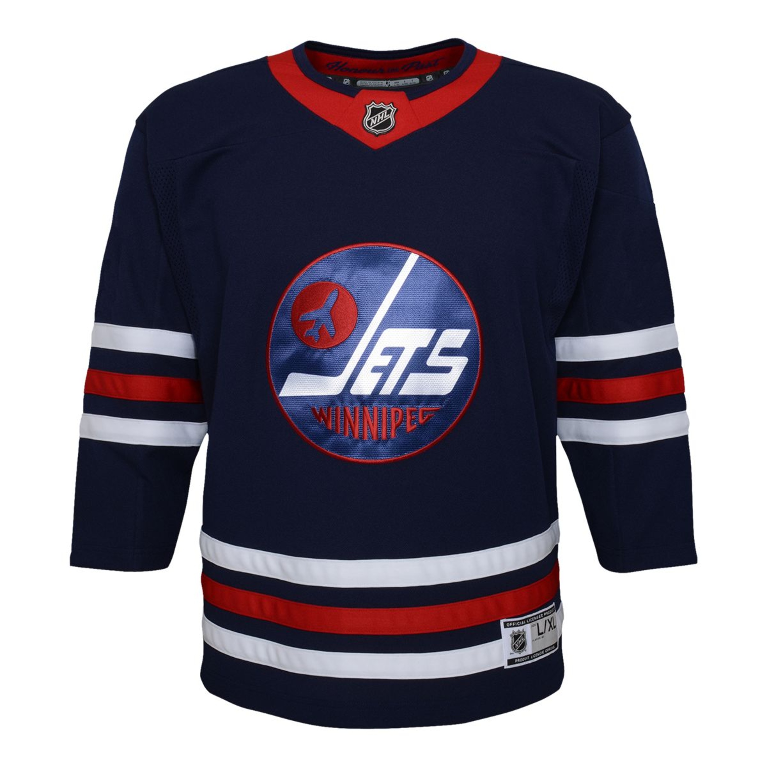 The Winnipeg Jets NHL Premier 3rd Alternate jersey is directly inspired by the on ice NHL jersey and the deep heritage of the franchise. Team specific design with stretch mesh construction and twill cresting package. Officially licensed by the NHL and NHLPA. Toddler size range.