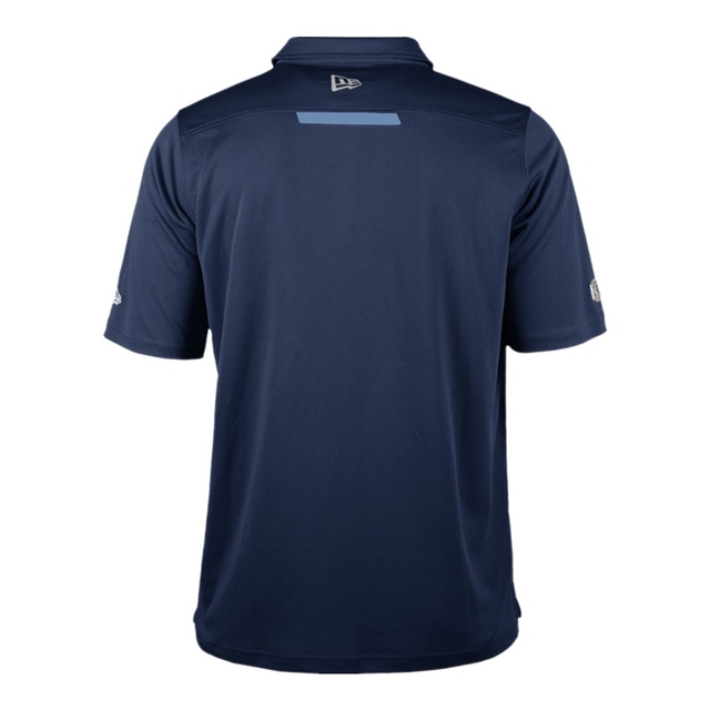 Toronto Argonauts Sideline Roster polo shirt. Athletic cut, in poly performance honeycomb mesh. Team color with secondary team color features on placket and centre back between shoulders. Primary logo on front left chest. Also features CFL badge on left sleeve and reflective Official Sideline tab on bottom hem.