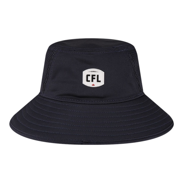 Toronto Argonauts Sideline bucket cap. Team colour pivot mesh and stretch mesh fabrication. Argos primary logo patch on front complimented by a reflective city wordmark. Liquid chrome CFL badge on the back. Adjustable drawstring is removable.