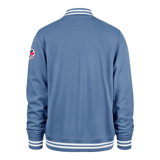 Show your Blue Jays pride in classic style with the Toronto Blue Jays 47 Brand Camden Track Jacket. This retro jacket features a handcut front script applique spelling out Blue Jays across the chest as well as an official Blue Jays logo embroidered on the left sleeve. Made from comfortable cotton, this licensed Blue Jays track jacket will have you looking great whether you're at the game or out on the town. With its vintage vibe and crisp team graphics, the 47 Brand Camden Track Jacket is perfect for loyal Toronto fans who bleed blue.