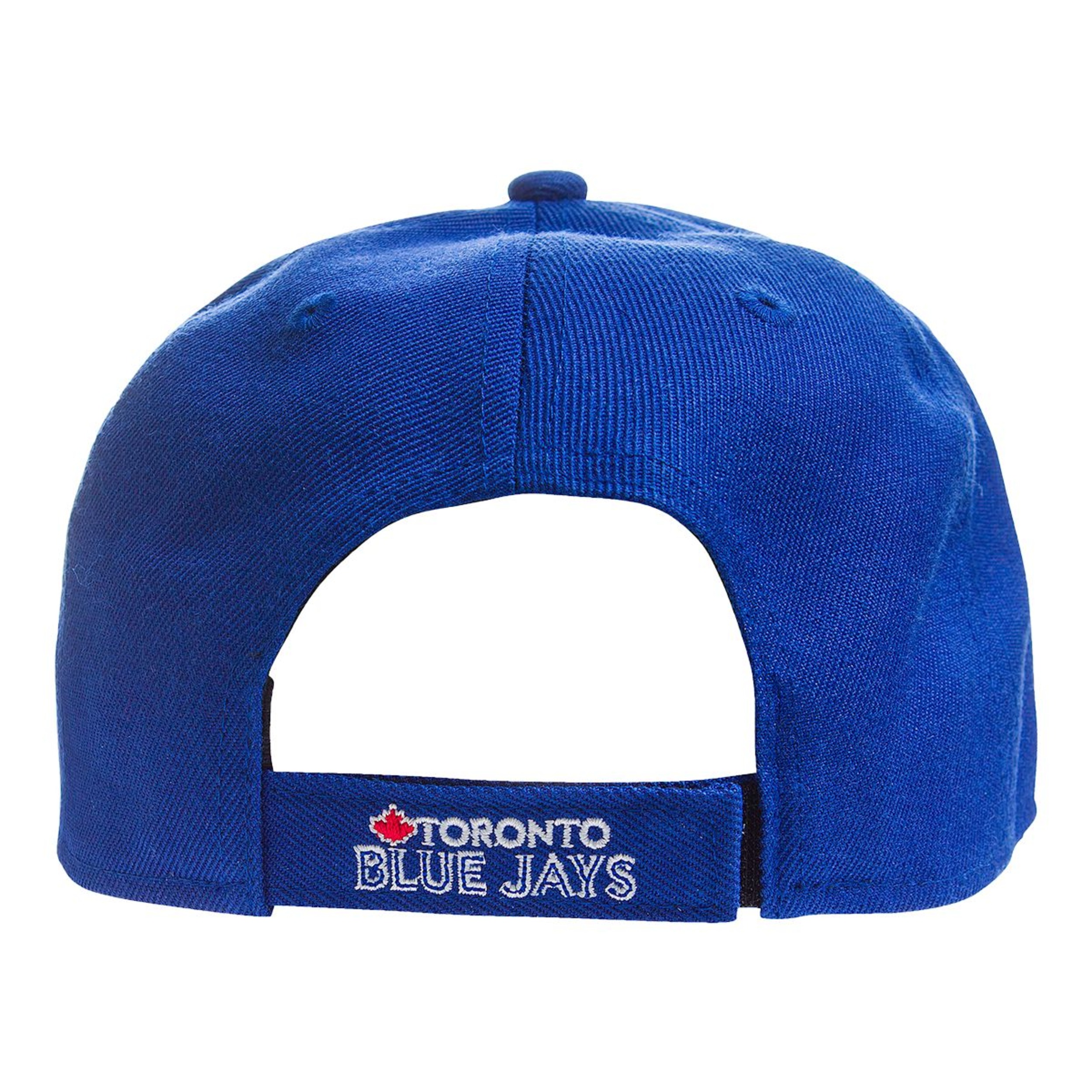 Embroidered Toronto Blue Jays team mark on back strap adds branding