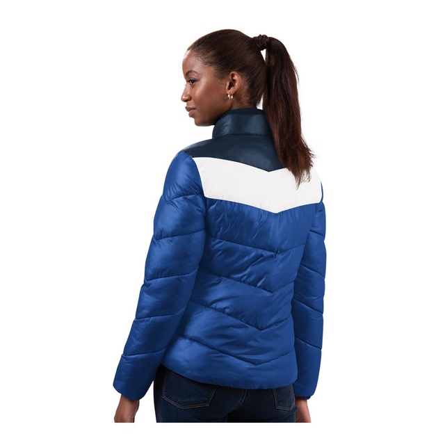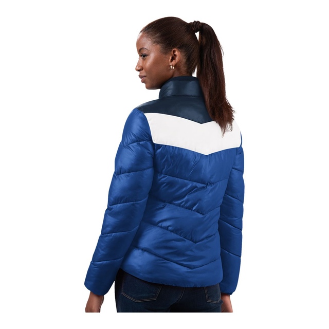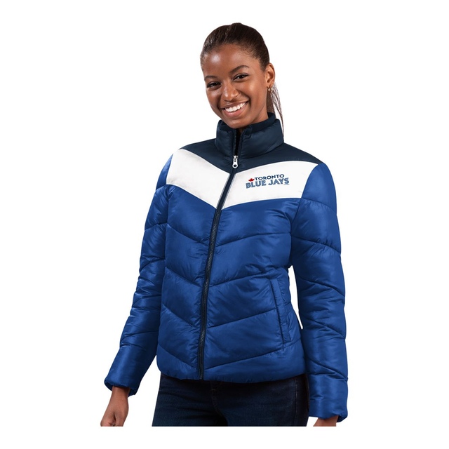 The Toronto Blue Jays G-III Women's New Star Quilted Jacket combines team pride with lightweight warmth. This stylish quilted jacket features lightweight insulation to keep you cozy without added bulk. The iconic Blue Jays logo shows your loyalty, while a full front zipper and ribbed cuffs and hem provide a secure fit to lock in warmth. Cheer on your team in style and comfort with this official licensed Blue Jays jacket.