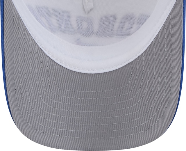 Show your support for the Toronto Blue Jays with the Toronto Blue Jays New Era A-Frame Chrome 9FORTY Cap. This baseball cap features a chrome white foam front panel and mesh back, complemented by a royal blue visor with a navy rope detail. The Toronto wordmark and Blue Jays logo are prominently embroidered on the front, making this trucker hat a must-have for any fan.