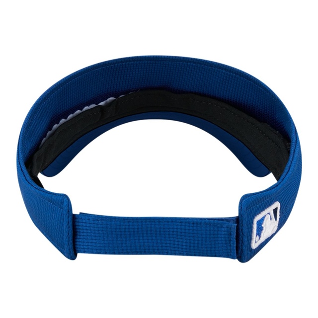 The Toronto Blue Jays 2024 Spring Training Visor features an embroidered Blue Jays logo at the front panels. Team color pivot knit fabrication. Embroidered chevron designs on front side seams, and MLB Batterman at rear.