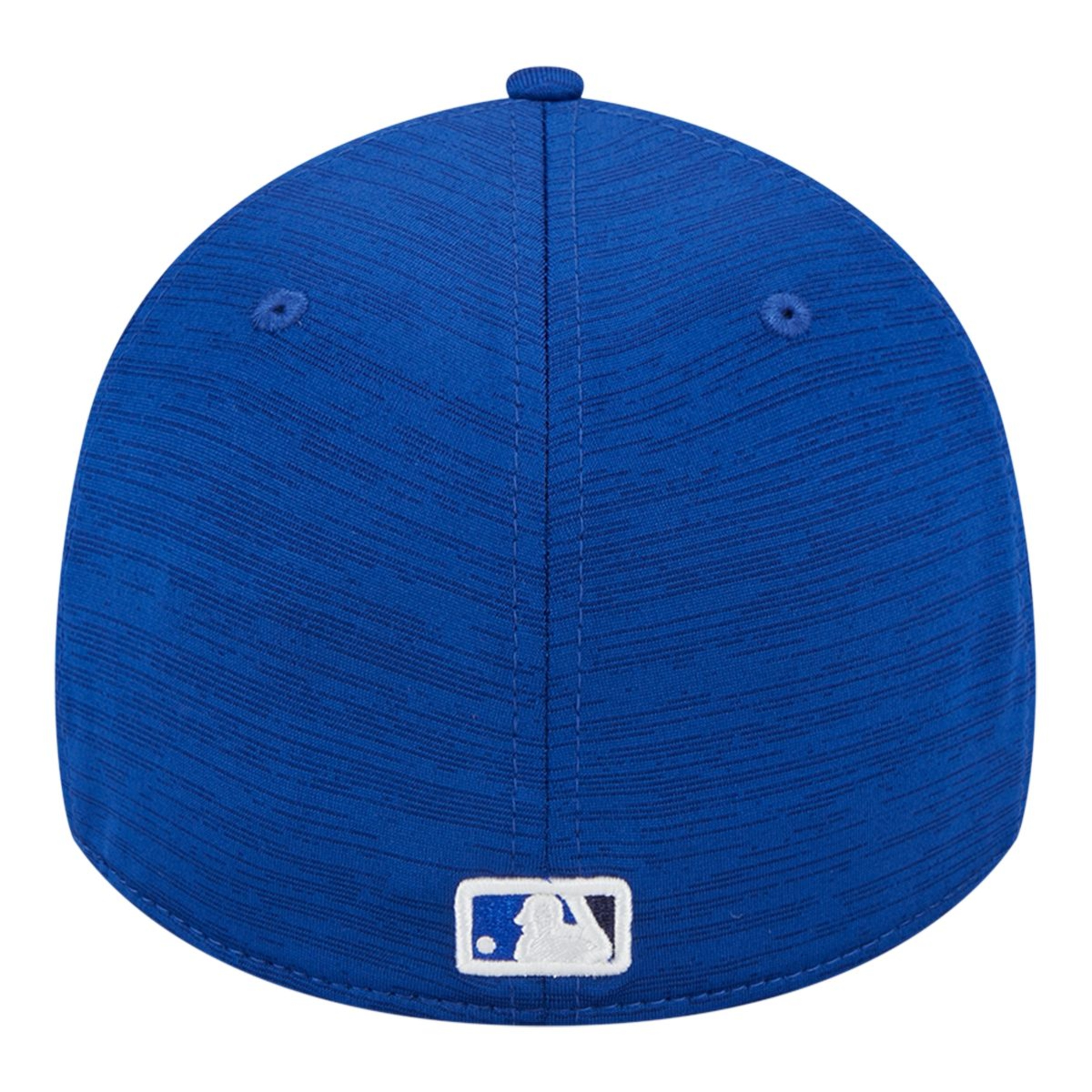 The Toronto Blue Jays 2023 Clubhouse 39THIRTY Stretch Fit Cap features a raised molded Blue Jays patch with embroidery at the front panels with a matching MLB Batterman logo at the rear and a gray undervisor.