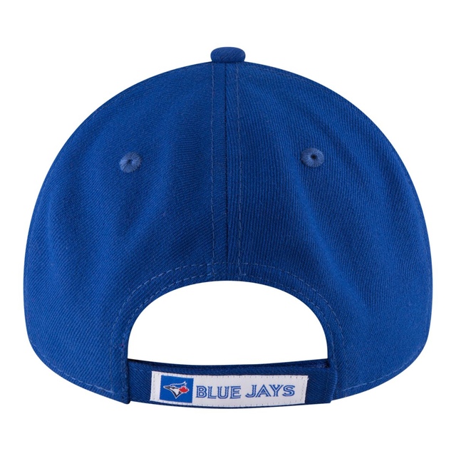 Blue Jays 9FORTY The League adjustable cap. Medium profile cap with pre-curved visor and velcro adjustable backstrap. Replica version of the ALT3 on-field cap, royal blue with white fronts. Embroidered primary logo on front and woven label with wordmark on rear.