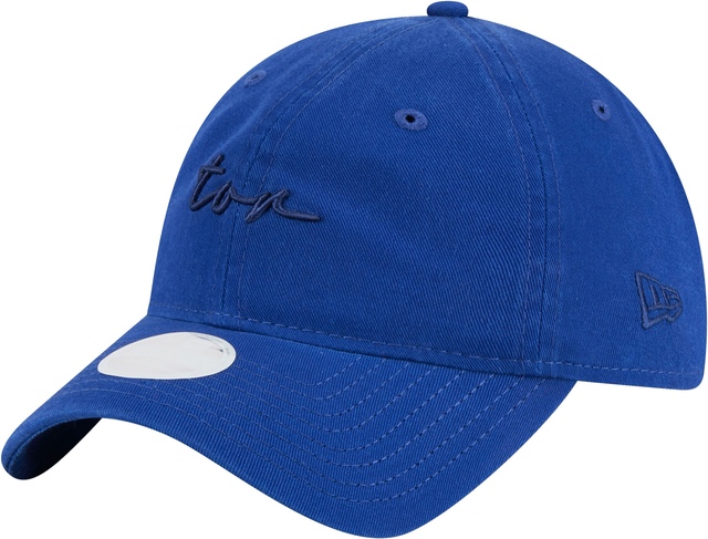 Show your support for the Toronto Blue Jays New Era Women's Script 9TWENTY Cap. This stylish baseball hat features a relaxed, casual look with a team colour royal cotton fabrication. The front showcases a micro-sized city wordmark script embroidery, while the back has a small Blue Jays woven logo next to the adjustable strap closure.