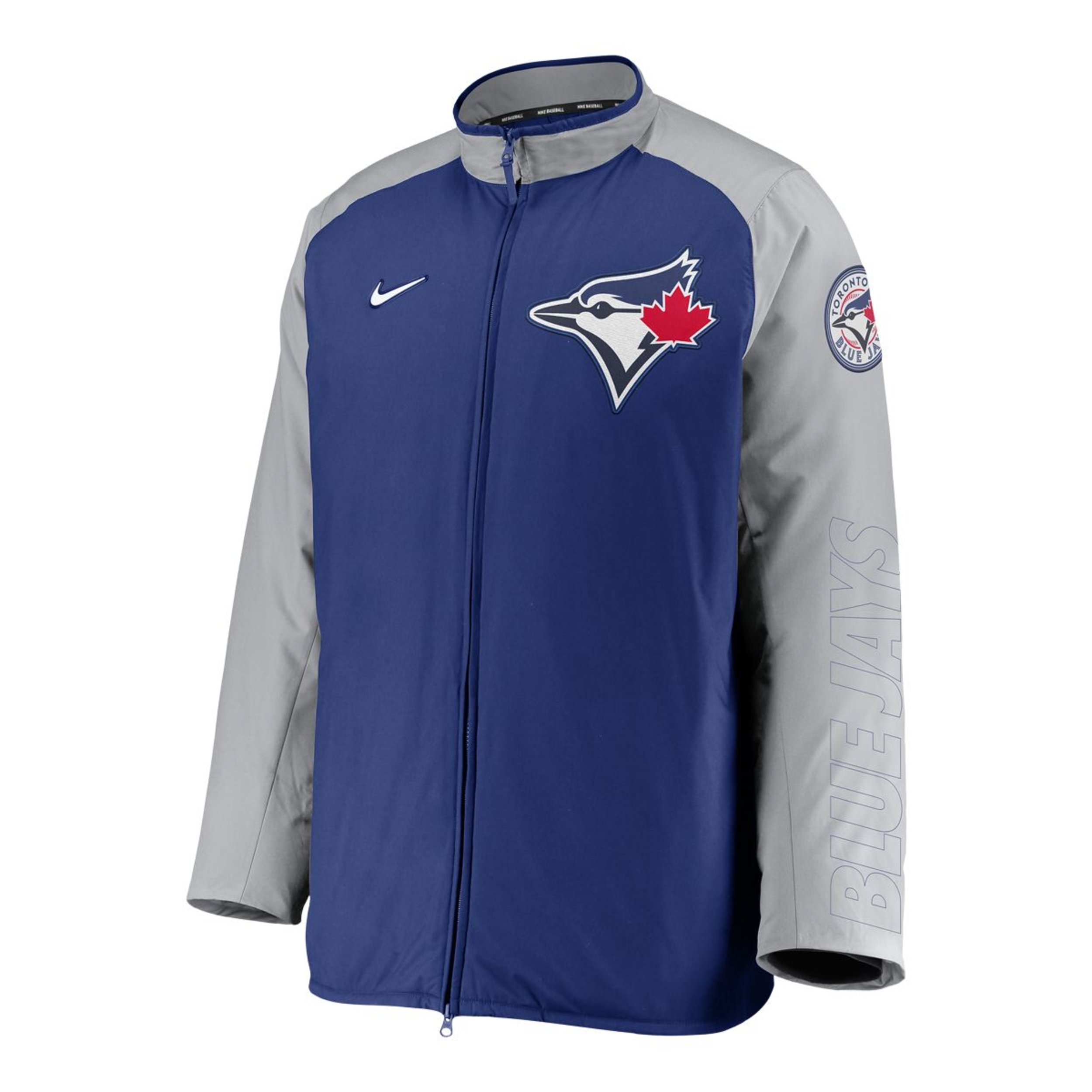 Gear up like the top Toronto Blue Jays players with this Nike Dugout jacket. Loads of pockets allow you to tuck small essentials away, and the standup collar offers extra coverage. With a heavyweight design, this full-zip features a quilted lining for added warmth and integrated Nike Repel technology to ward off rain or moisture. The striking Toronto Blue Jays graphics make this jacket a must-have for any fan facing chilly temperatures.