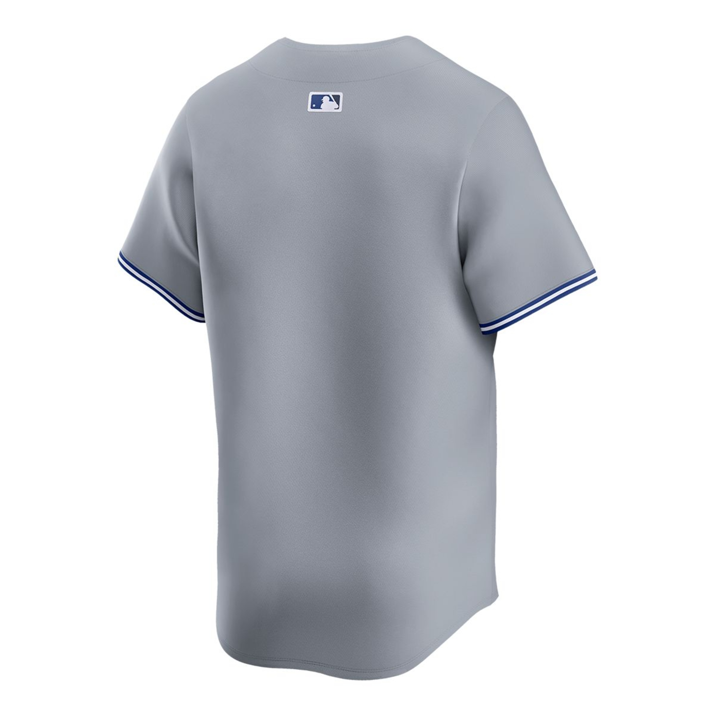 The Toronto Blue Jays Nike Limited Road Jersey is a high-quality baseball uniform crafted for the passionate fan. Constructed from a lightweight and breathable recycled polyester double mesh fabric, this officially licensed MLB jersey helps keep you cool and comfortable. The classic road gray color features detailed tackle twill embroidery showcasing the iconic Blue Jays graphics for unbeatable team spirit.