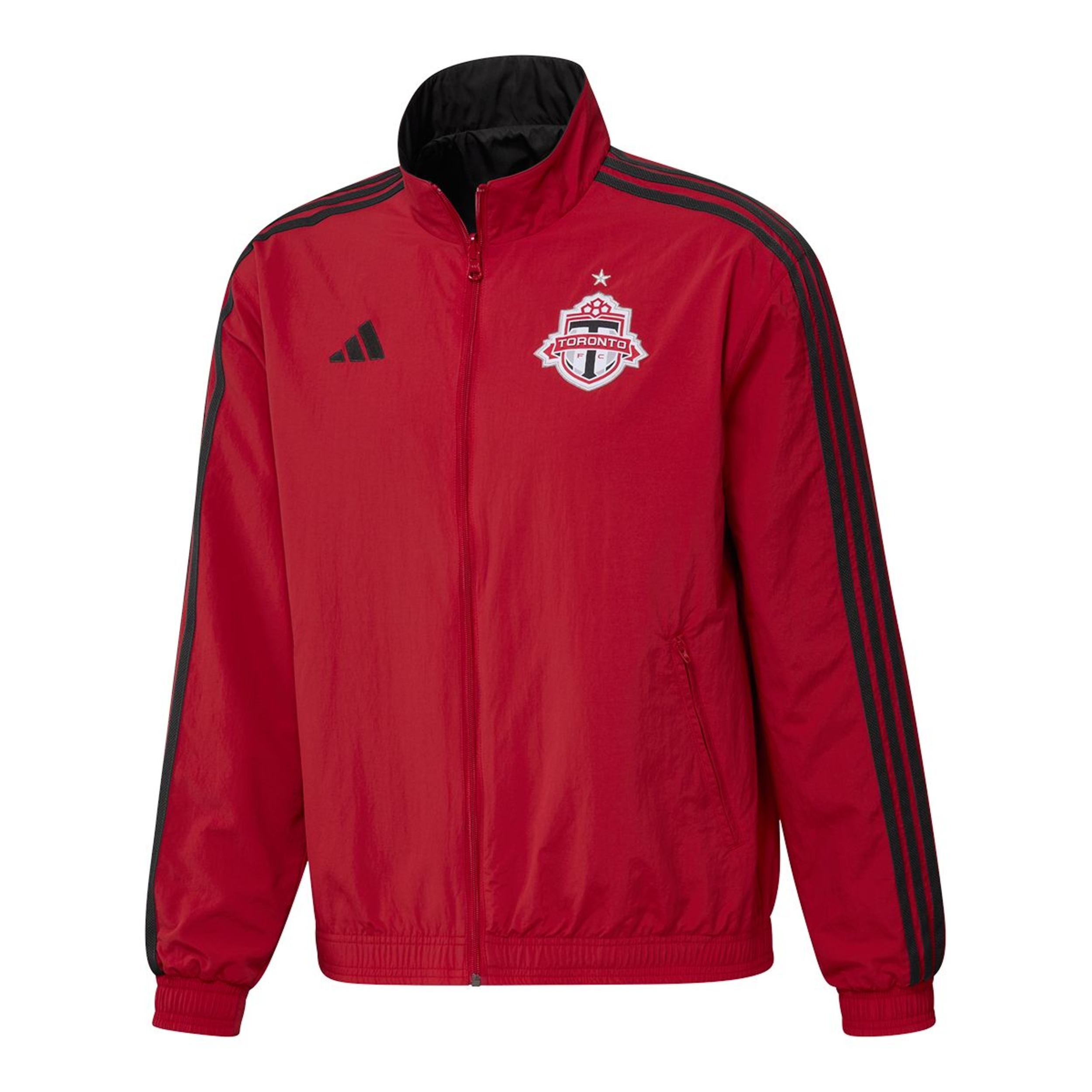 This is the adidas jacket worn by Toronto FC players as they line up before games. Pull it on to rep The Reds wherever your football passions take you. When you need a fresh look, turn it inside-out so you can stay proud and stylish on or off the field. Made with 100% recycled materials, this product represents just one of the solutions to help end plastic waste.