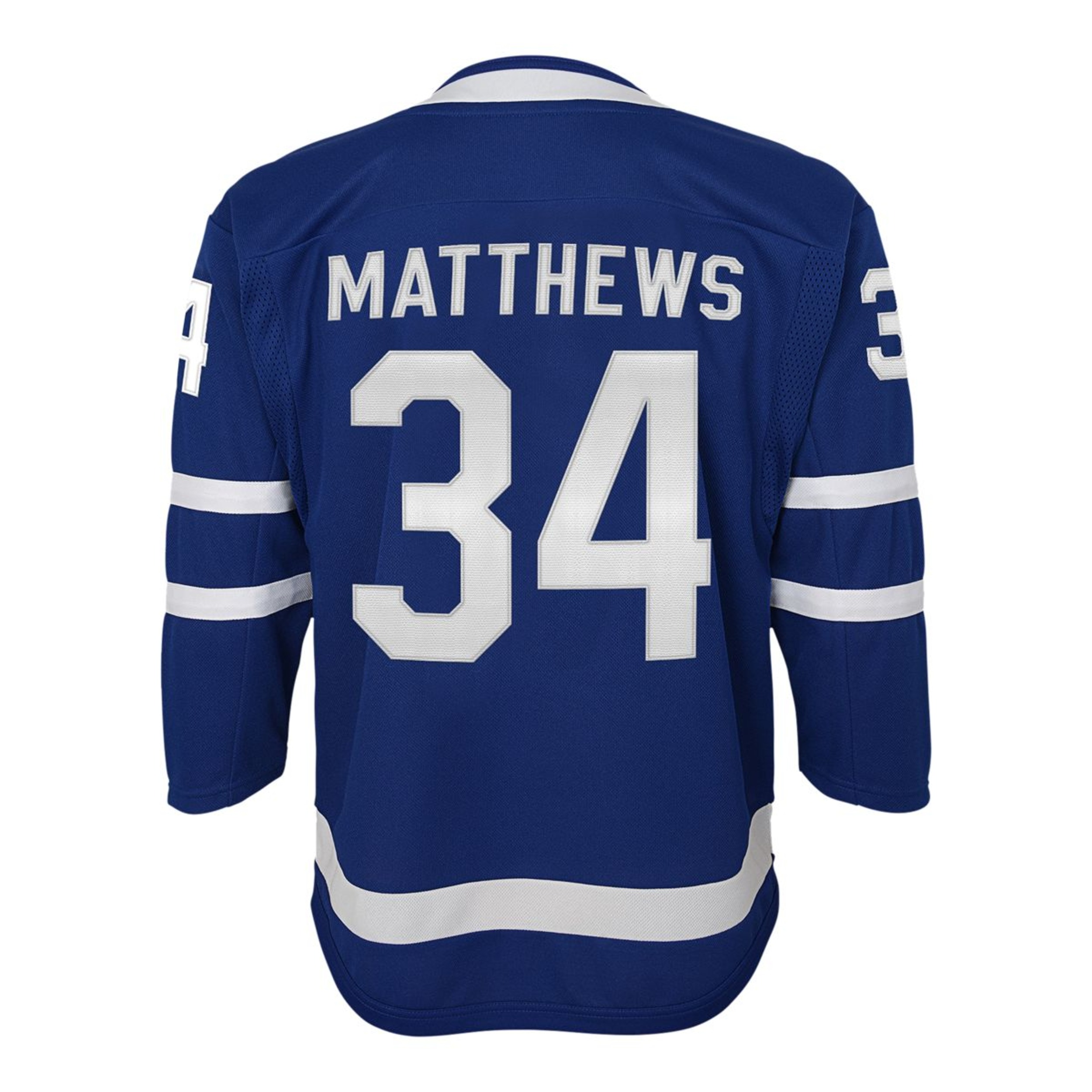 The Toronto Maple Leafs NHL Premier team color blue home jersey is a true classic. Iconic in design, color, and fabrication that pays tribute to Maple Leafs rich history. Complete with Auston Matthews #34 name and number. This is a must have jerseys for any young Maple Leafs fan. Officially licensed by the NHL and NHLPA. Infant 12M to 24M size range.