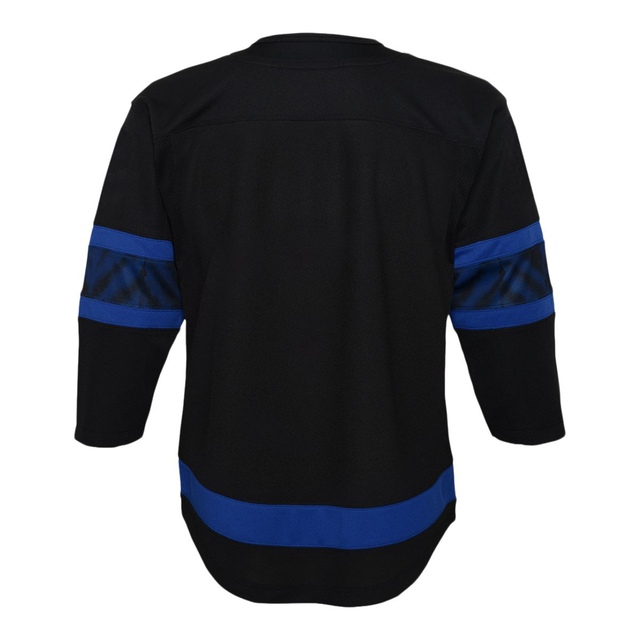 The Toronto Maple Leafs Child Drew House NHL Replica Hockey Jersey offers a radical design with reversible features, bringing innovation to the NHL jersey. The fashion-forward black and blue colour scheme is youthful, featuring design elements that showcase both the Maple Leafs and the city of Toronto. Worn either way, this Drew House jersey is perfect for any young Leafs fan.