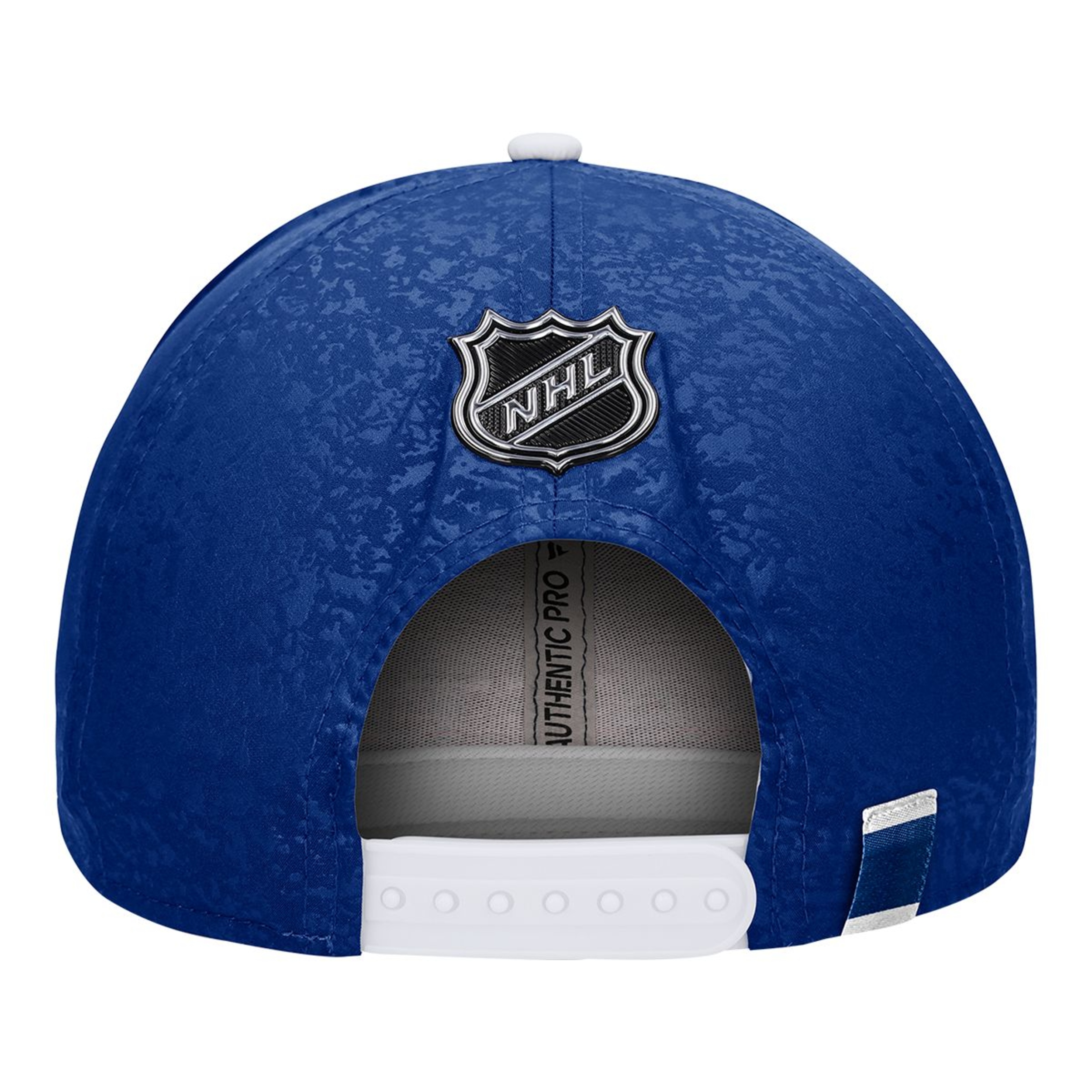 Calling all Maple Leafs fans! Elevate your game-day look with the Fanatics Authentic Pro Rink Debossed Flat Brim Snapback Cap. This officially licensed NHL cap features the iconic Maple Leafs logo debossed on a sleek, flat brim design. Crafted with a comfortable, adjustable snapback closure, this cap ensures a perfect fit no matter how rowdy the crowd gets. Whether you're cheering from the stands or repping your team at the local watering hole, this cap's team-colored design and high-quality construction will have you looking game-ready from tip-off to the final buzzer. So don your blue and white, and get ready to show the world that you bleed Maple Leafs blue.