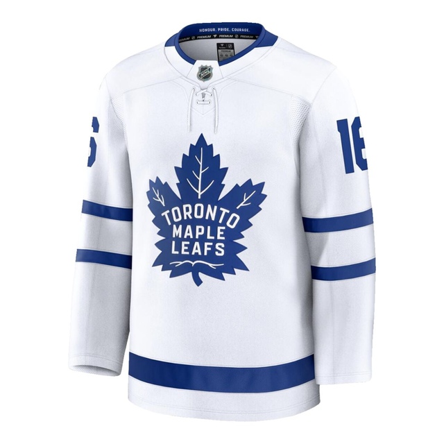 The Toronto Maple Leafs Fanatics Mitchell Marner Premier Jersey is officially licensed NHL for devoted fans. This durable jersey features sewn down tackle twill with high definition embroidered details including the team crest and shoulder patches for authentic detailing. Its embroidered Fanatics flag and holographic NHL shield represents your support for Mitchell Marner and the Maple Leafs.